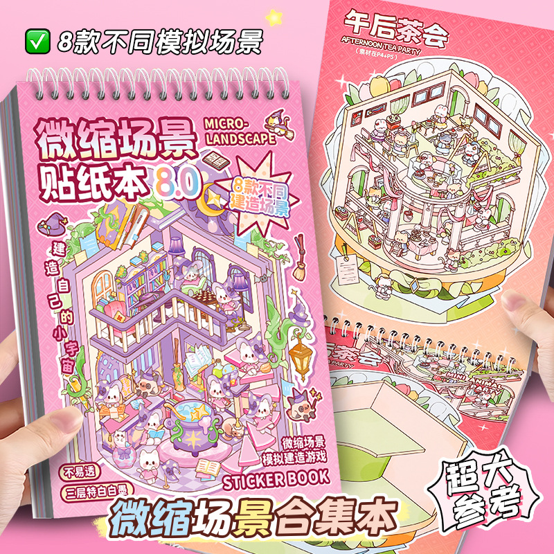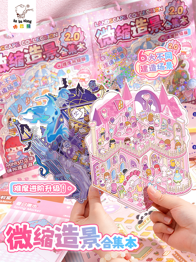 ミニチュア造景ステッカー本合集3d立体小屋ステッカー子供手作りシーンステッカー本タイル小図案