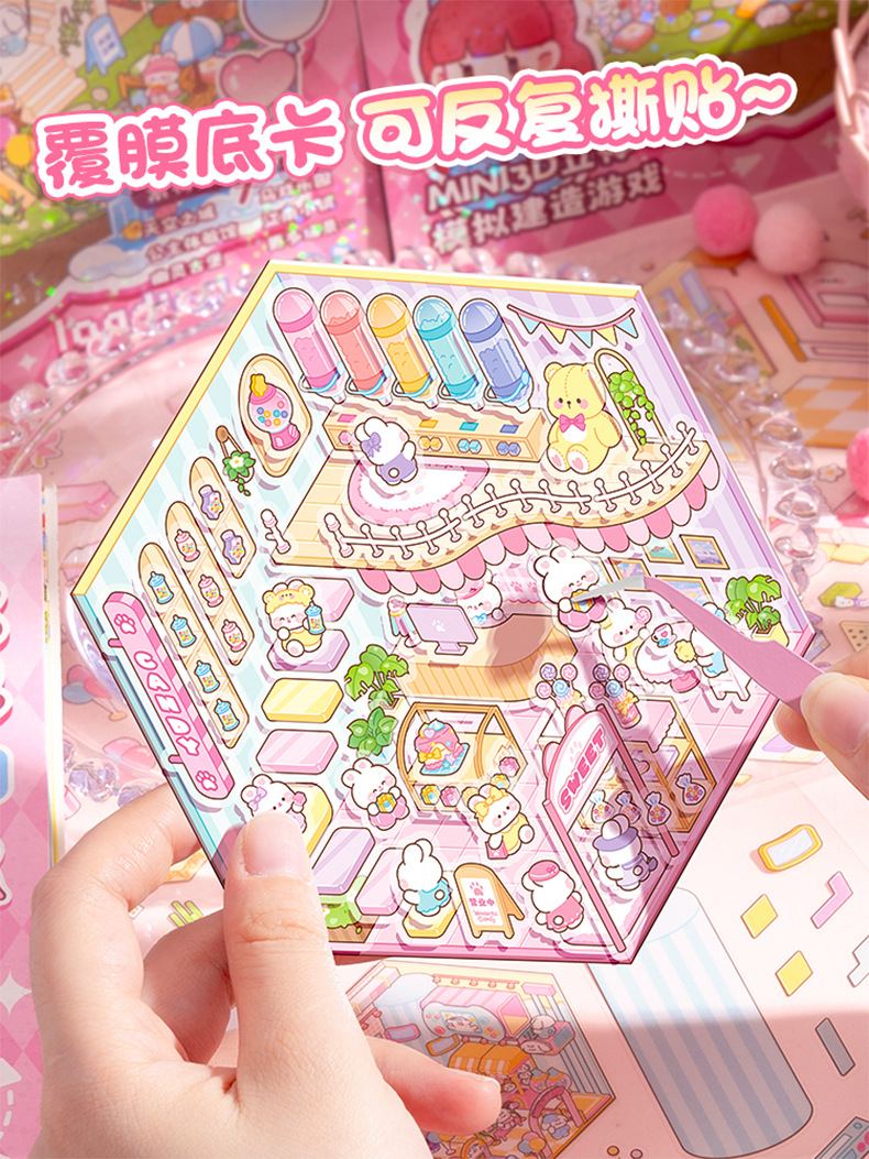 创意微缩造景贴纸合集本模拟经营场景立体小屋贴纸儿童手工安静书