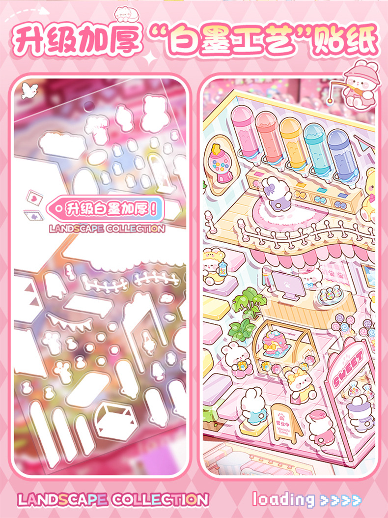 创意造景贴纸3D立体小屋微缩场景合集本儿童趣味DIY手账贴纸游戏