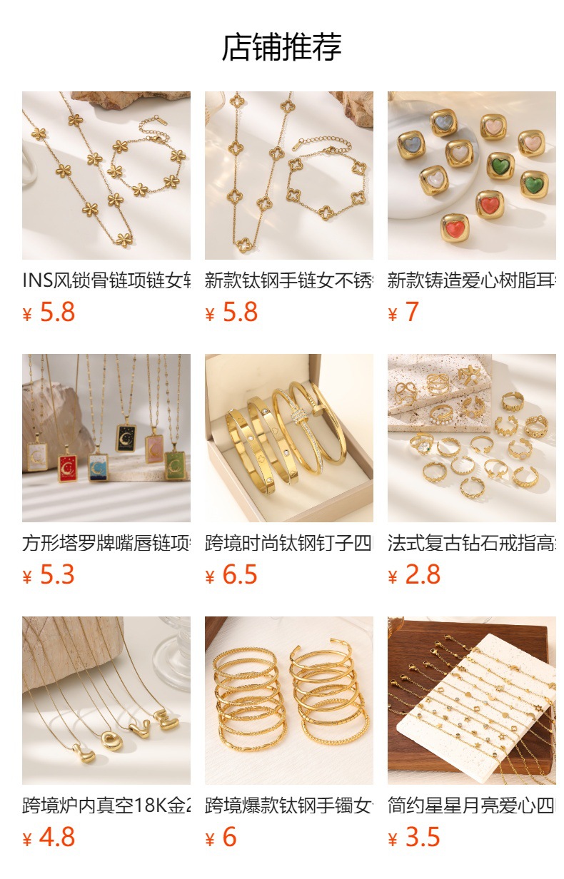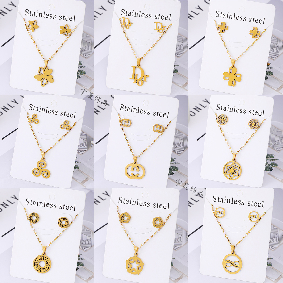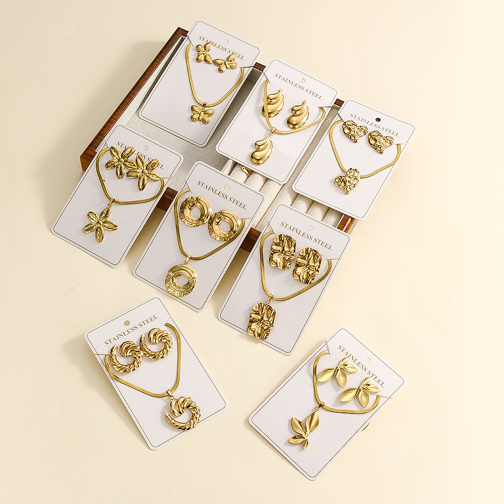 新款油压套装复古宫延耳钉项链不掉色不锈钢镀金饰品批发厂家直销