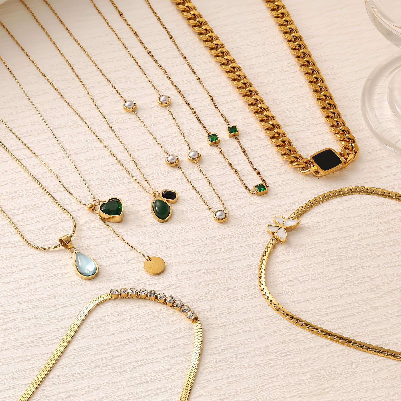 新しいライト高級ステンレス鋼象嵌マザーオブパールジルコンネックレス女性用 18K リアルゴールド非退色多用途チタン鋼ネックレス