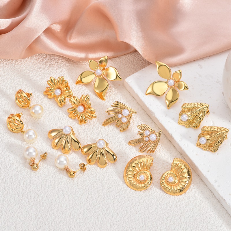 国境を越えて新しいフランスの贅沢な気質真珠ピアス18k金ステンレスイヤリング高級チタン鋼耳飾り