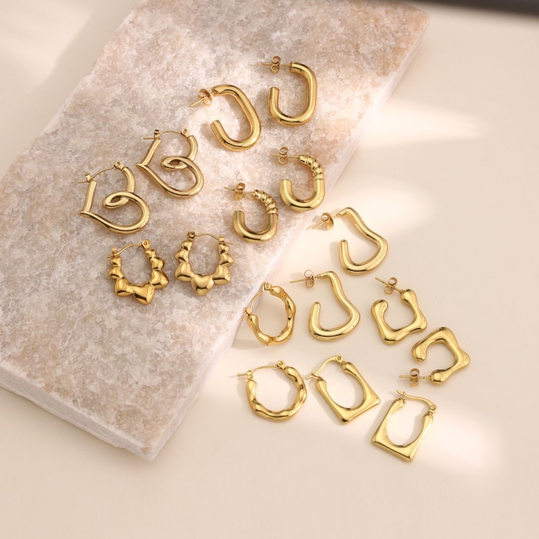 クロスボーダー幾何学不規則ハンマーステンレス油圧イヤリングファッションシンプルなコンビネーションメッキ18kゴールドピアス