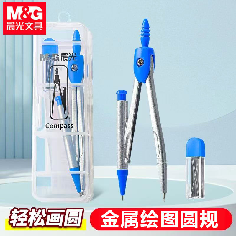 晨光ACS90805圆规盒装带铅芯自动铅笔学生绘图圆规金属规作图画圆