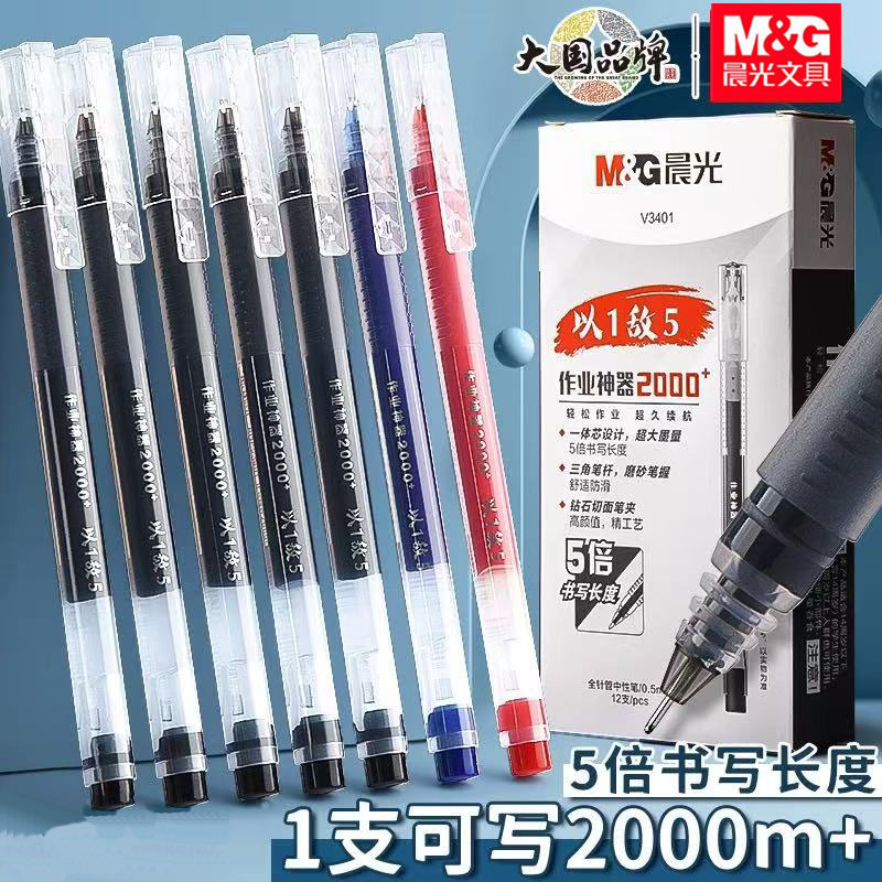 晨光AGPV3401中性笔作业神器黑色水笔0.5mm全针管一体式大容量笔