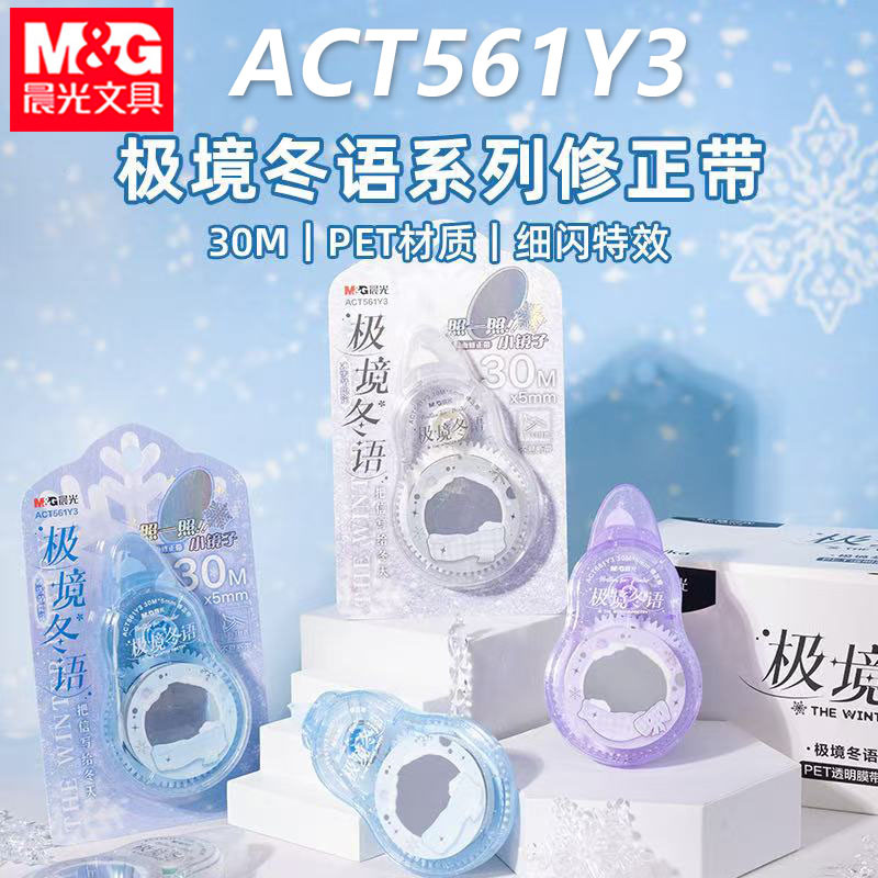 晨光ACT561Y3极境冬语修正带30米大容量PET带芯镜面改正带涂改带
