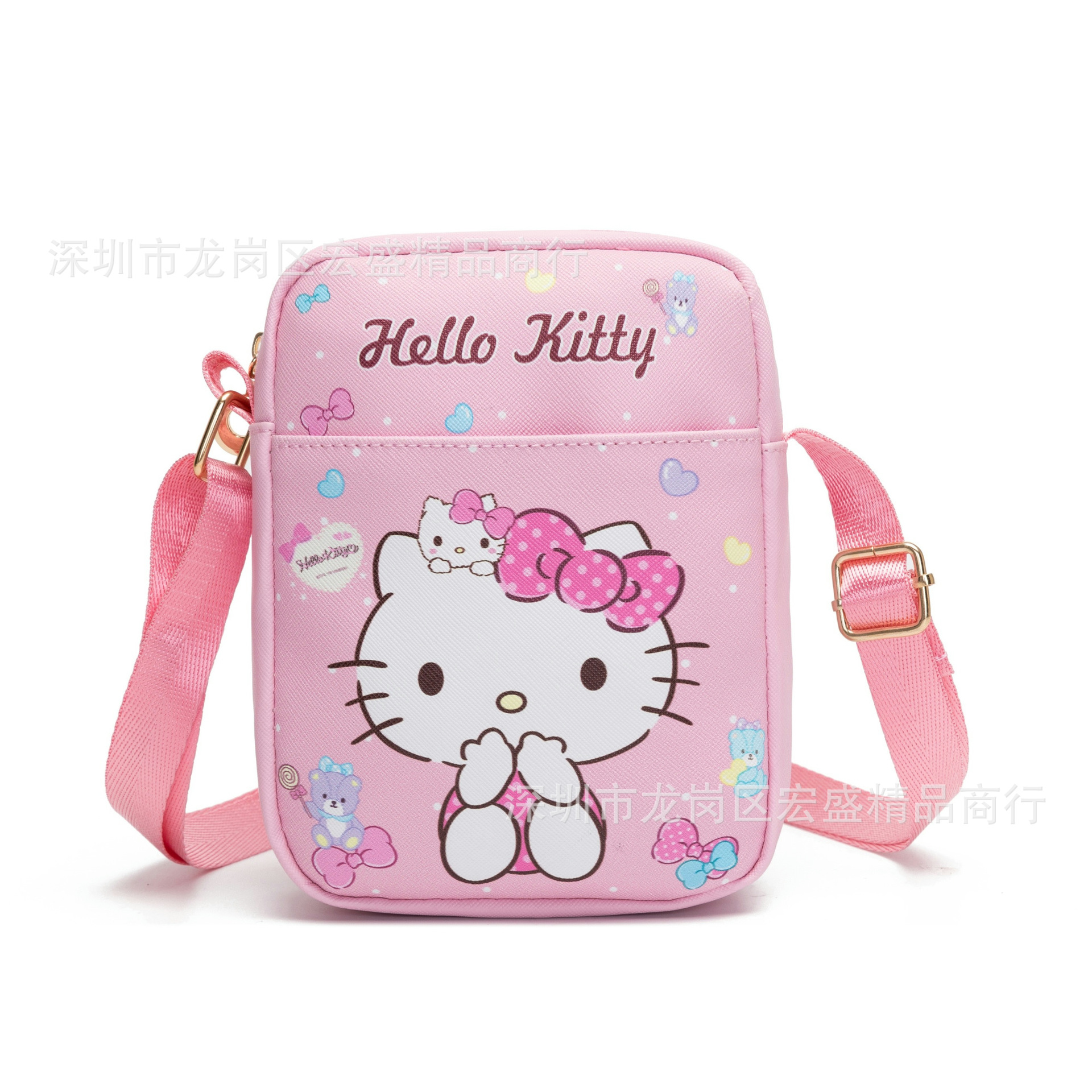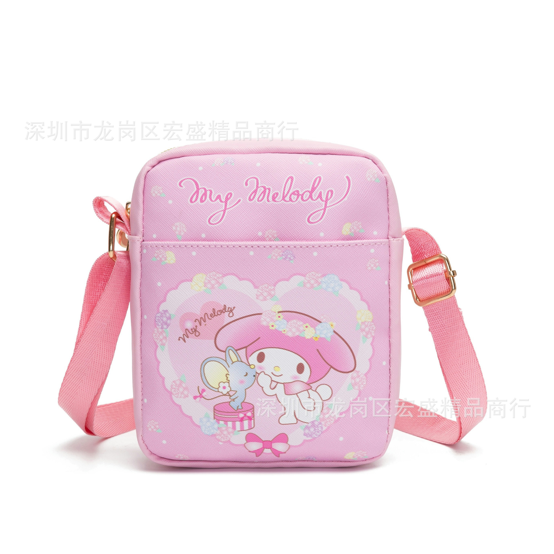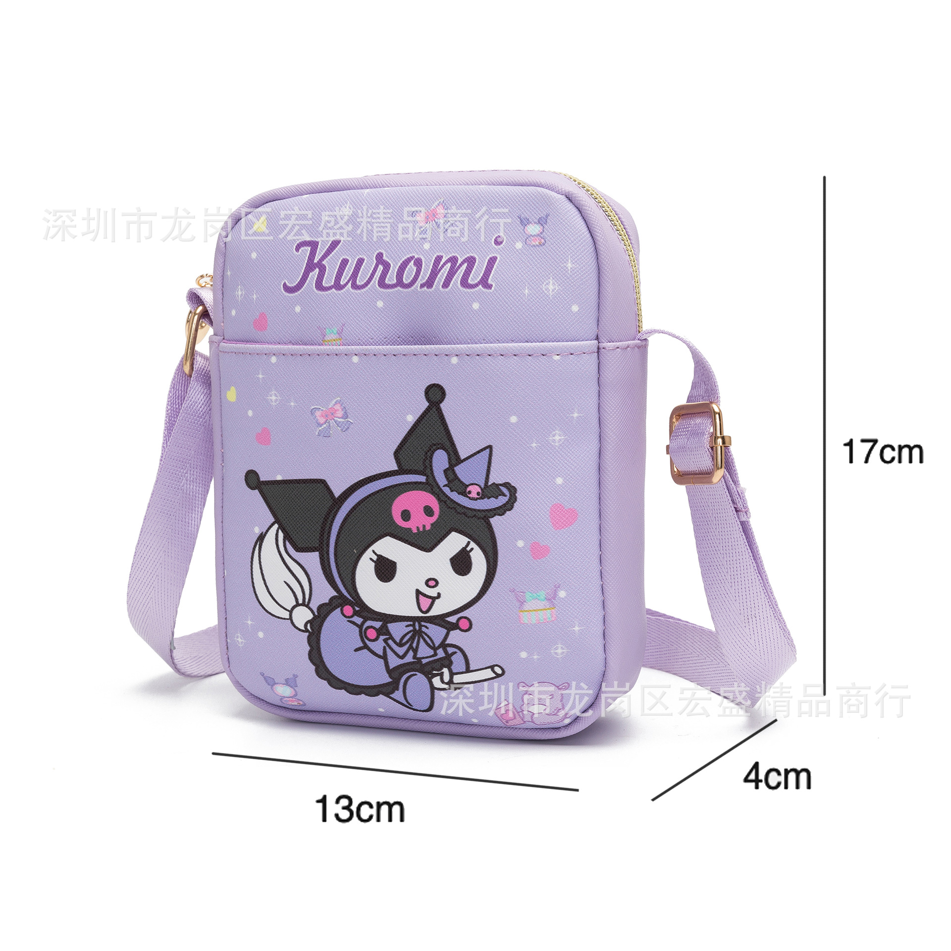 かわいい漫画風クロミ、キティちゃん、マイメロディ、シナモロールの携帯電話や鍵を便利に収納できる斜め掛け子供用バッグ