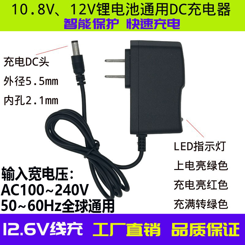 12.6vスマートターンランプdc 5.5*2.1ライン充電リチウム電池充電器美規12vハンドドリル充電器