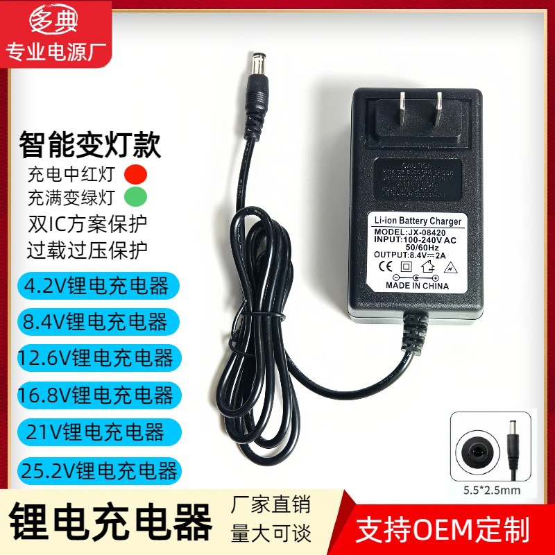 8.4V12.6V16.8V21V25.2V锂电池充电器1A2A 18650聚合物变灯充电器