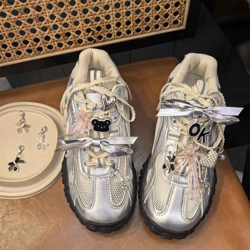 银色芭蕾风蝴蝶结鞋扣高级感粉色串珠鞋花珍珠爱心镶钻蝴蝶结鞋挂