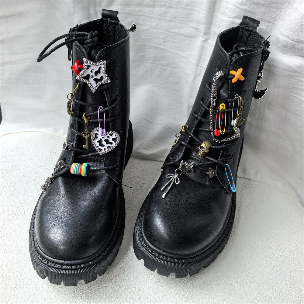 新しいギターマーティンブーツ、ハイエンドメタルパンクシューズアクセサリー、オートバイシューズ、ヒール装飾靴バックルチェーン