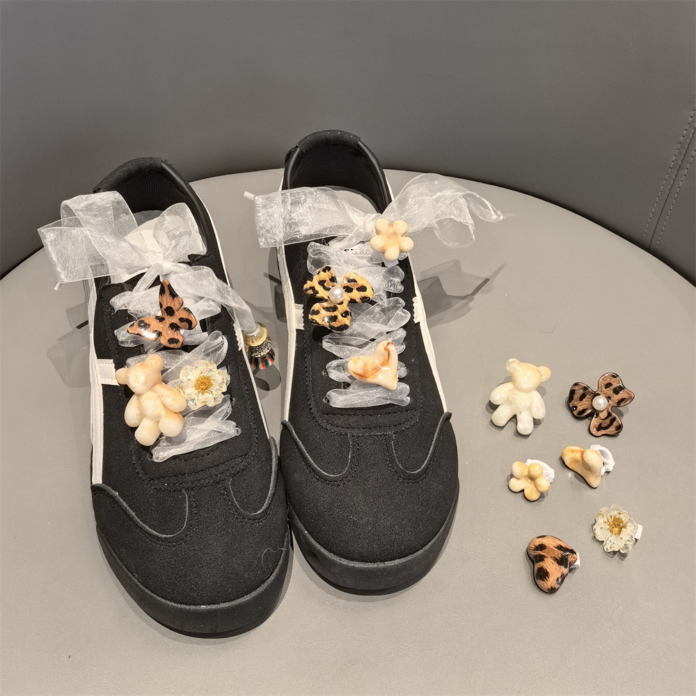 秋冬新款豹纹蝴蝶小熊爱心鞋带扣高级感甜酷德训鞋琥珀色花朵配饰