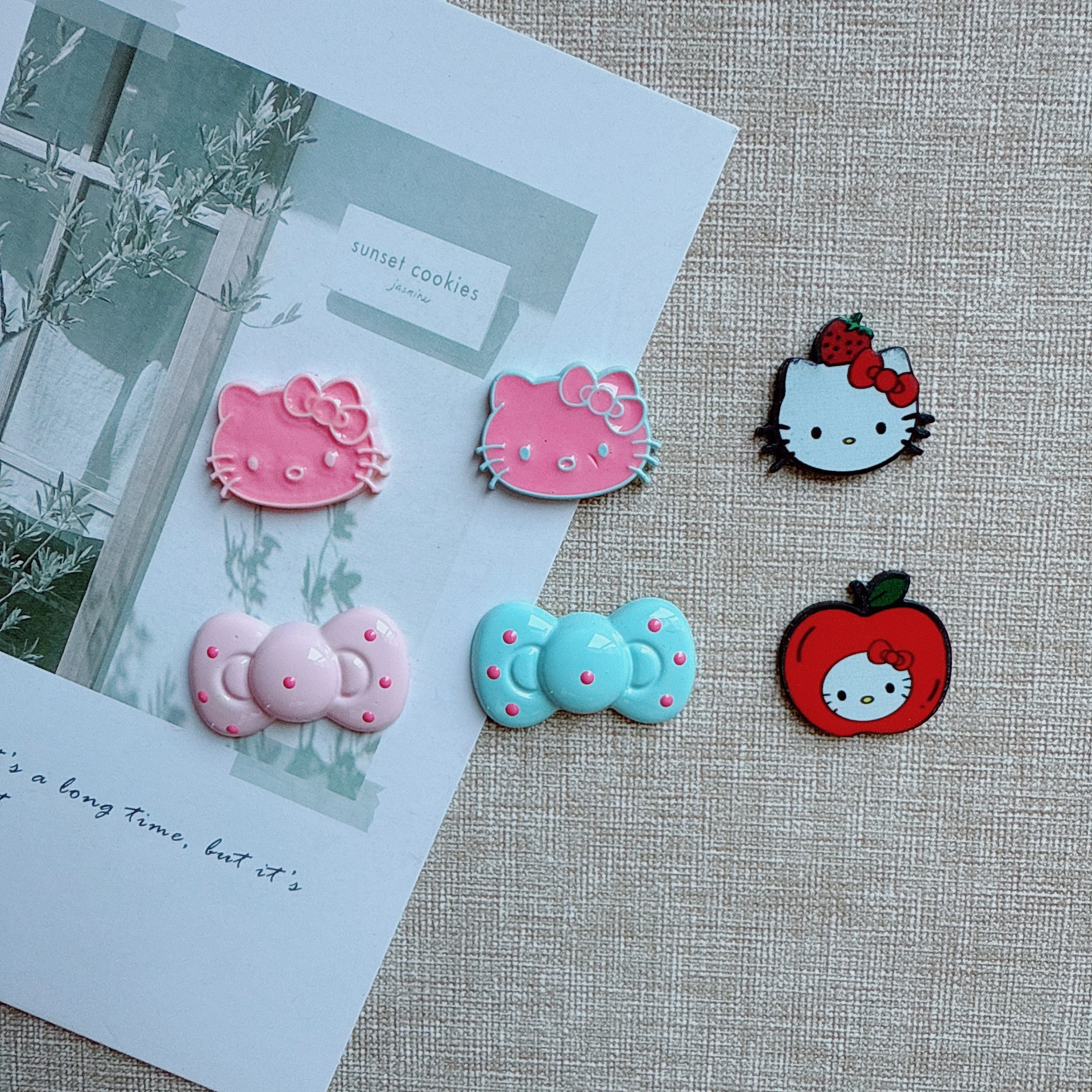 多巴胺波点蝴蝶结 马卡龙色kt猫diy饰品配件手机壳洞洞鞋发夹材料