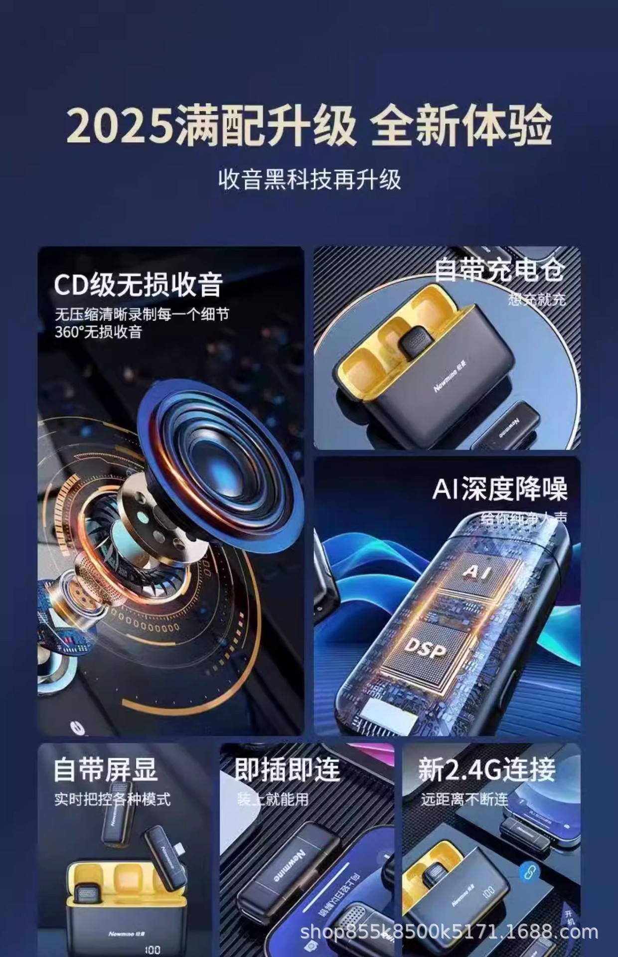 新款M8迷你无线领夹麦克风一拖二带充电仓直播智能降噪领夹麦