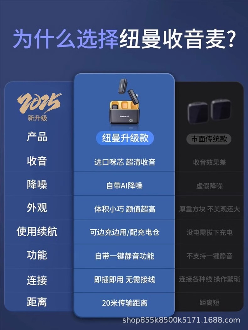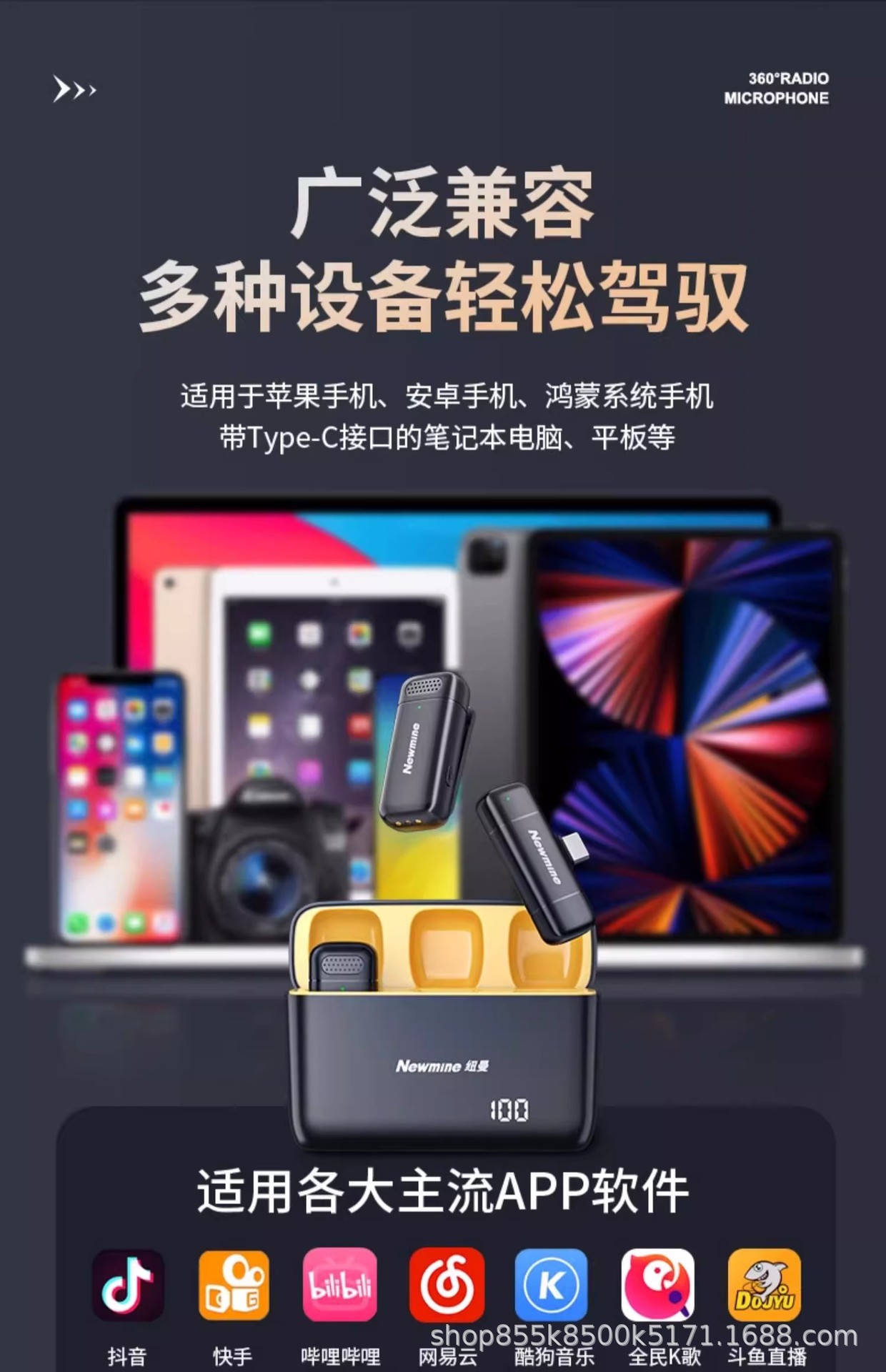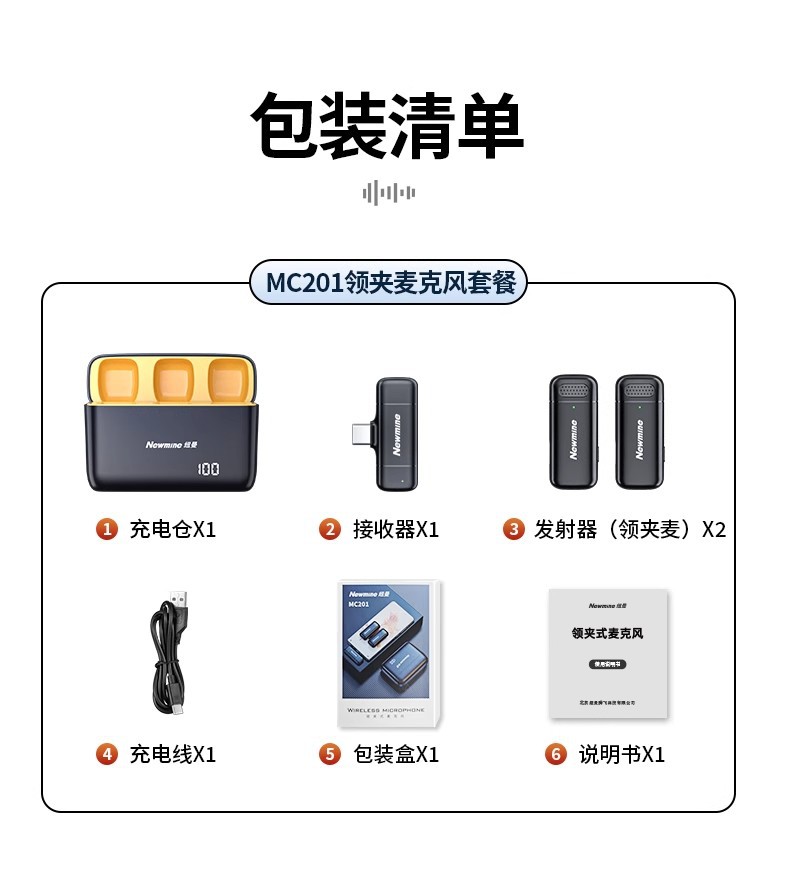 纽曼MC201无线领夹直播麦克风采访录音拍视频专业降噪收音设备