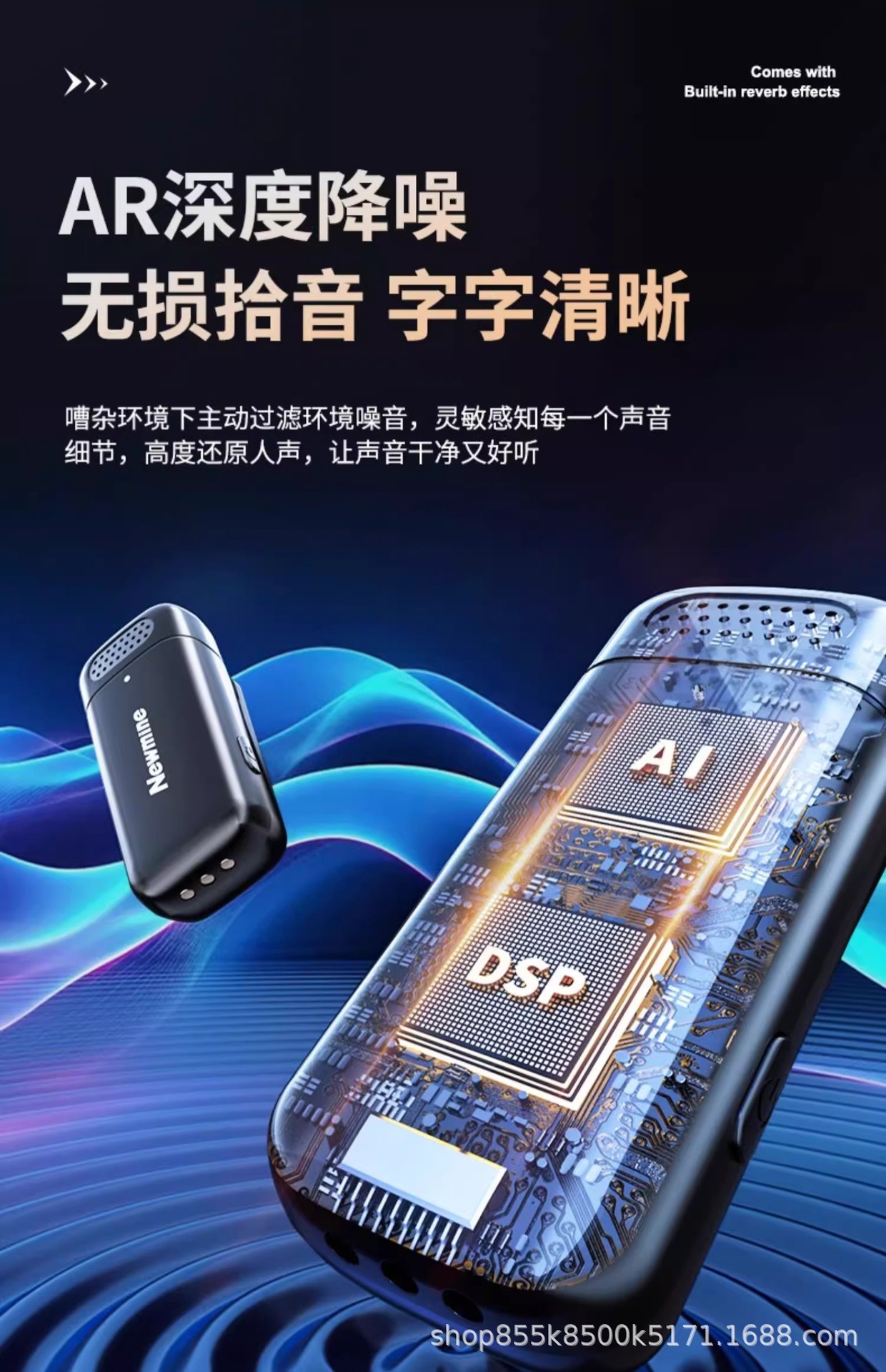 纽曼MC225无线领夹麦克风主播收音麦户外采访短视频录音AI降噪