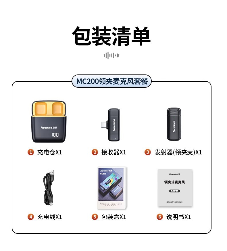 纽曼无线领夹式麦克风MC200领录音降噪设备录视频直播收音话筒