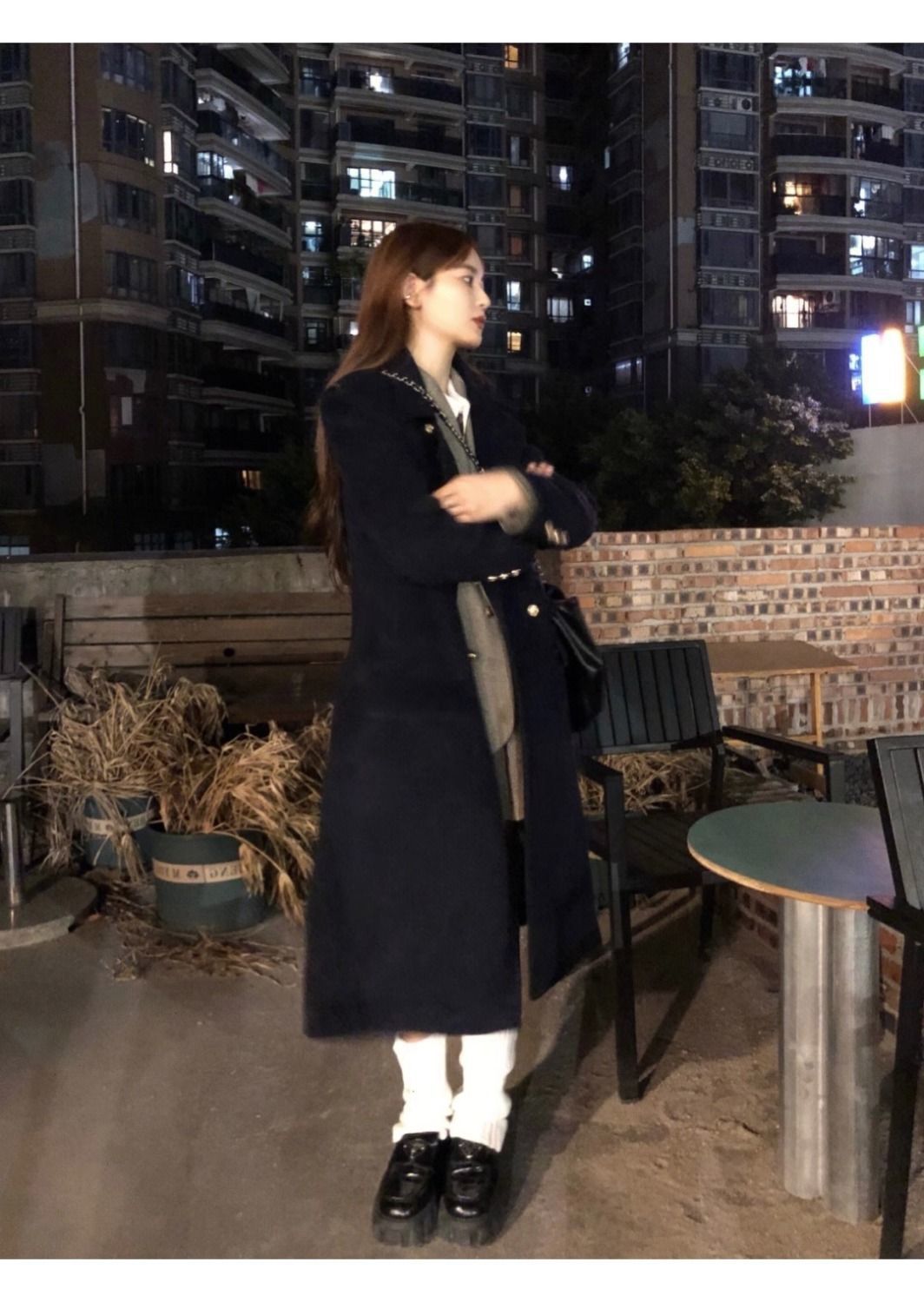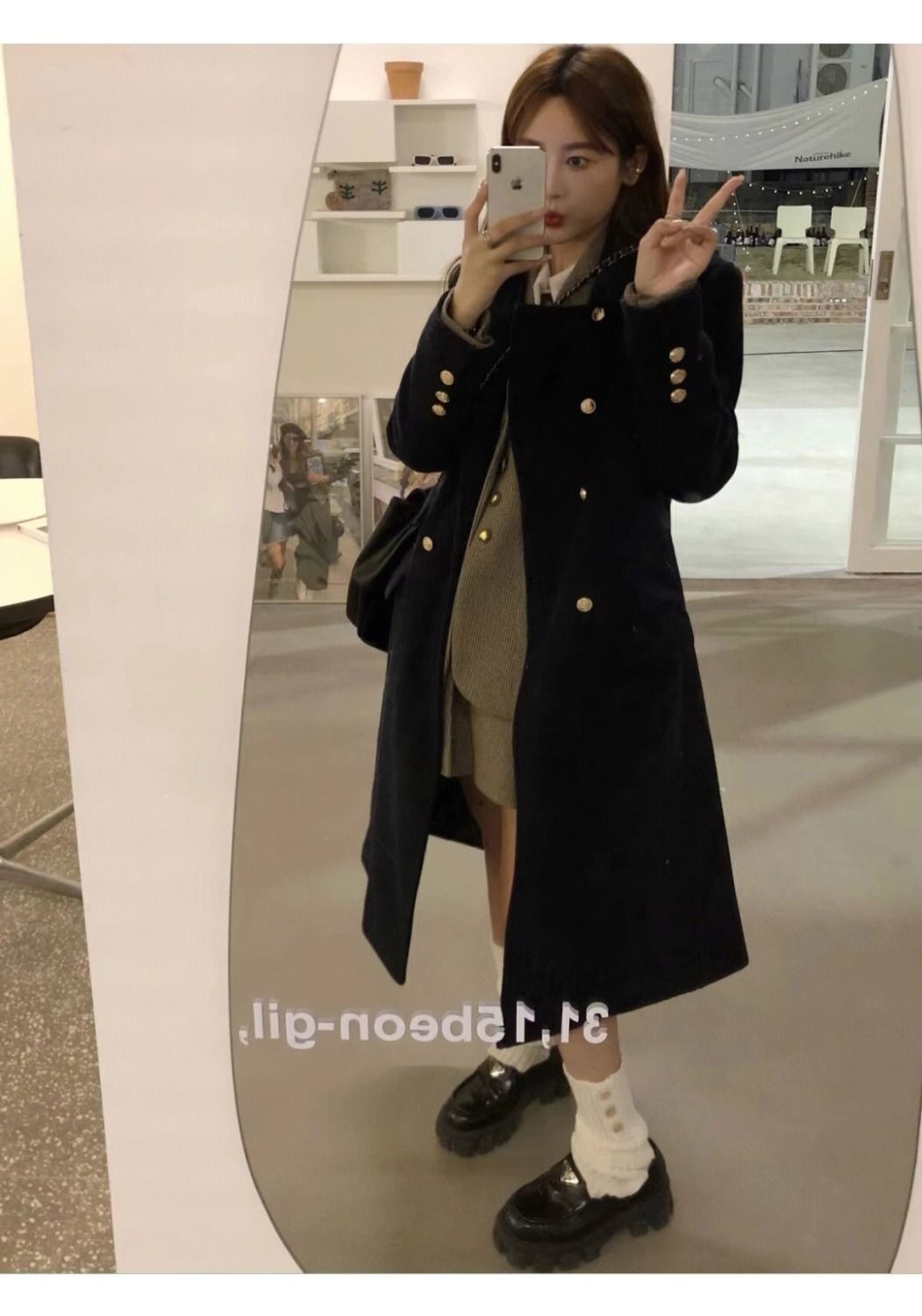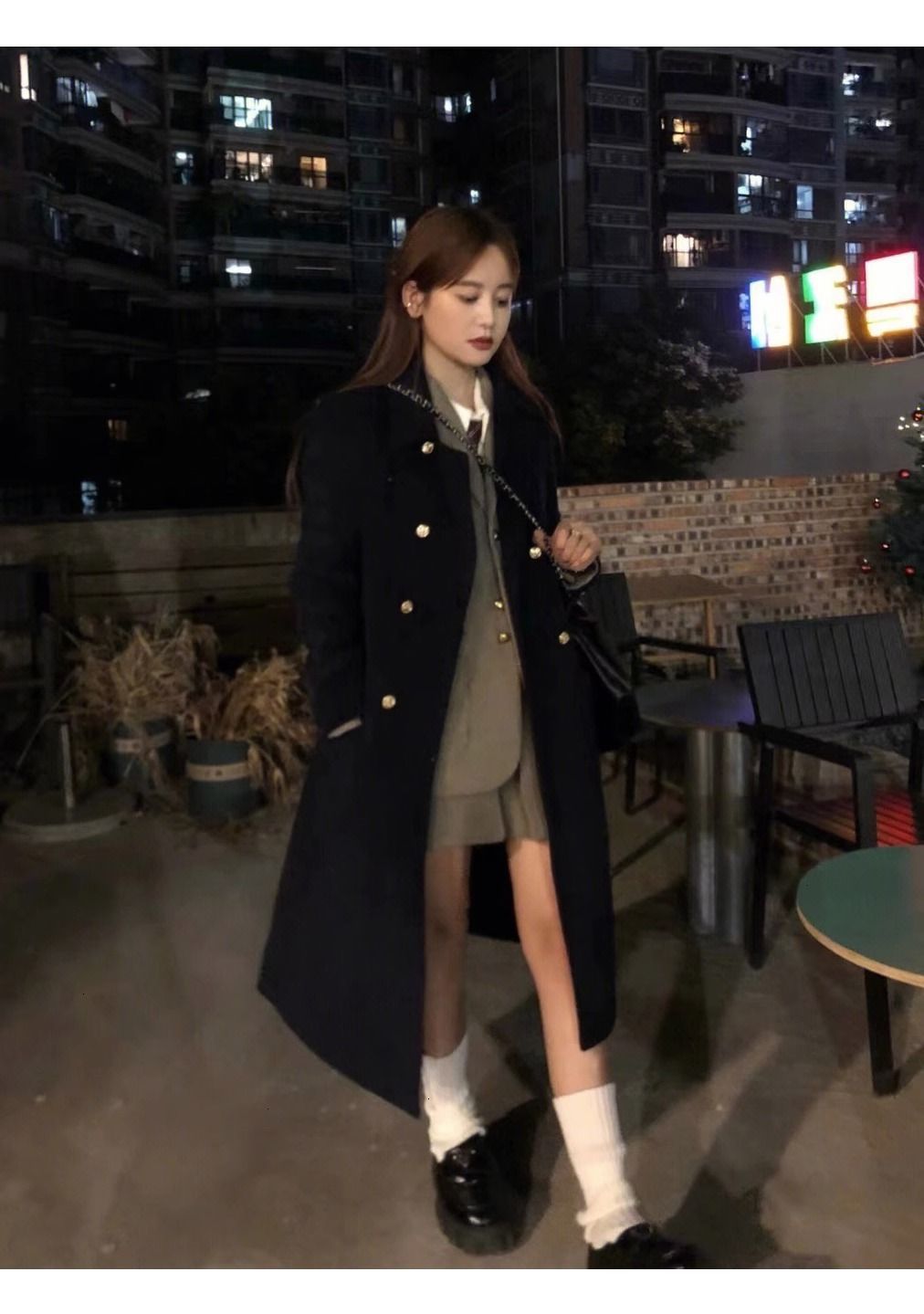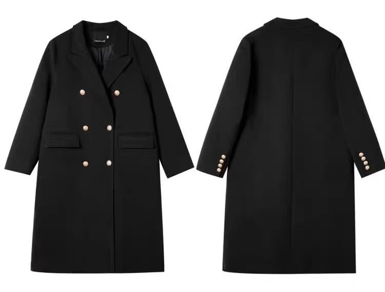 ミドル丈の黒のウールコート レディース 2025秋冬新作 ヘップバーン風 小柄な女性向け ダブルボタン ウールコート