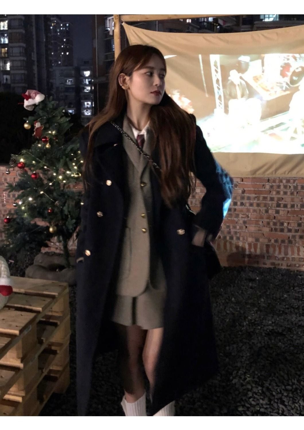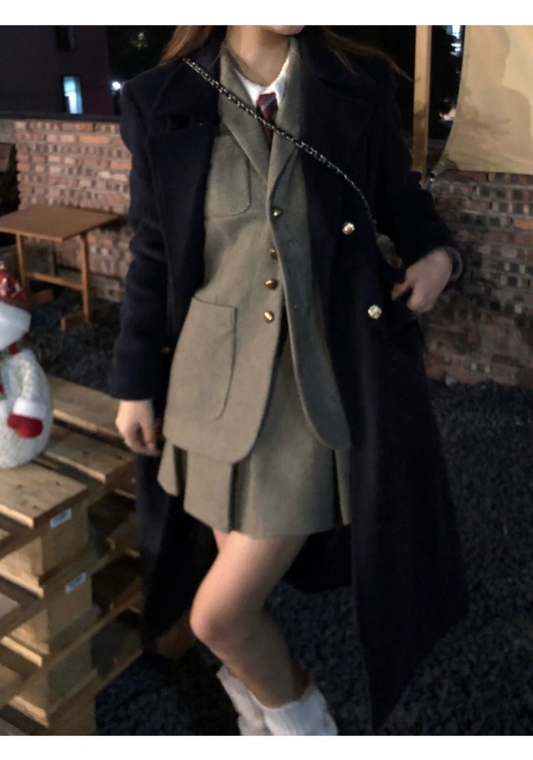 女性のための冬の厚いウールコート 2025 新しい韓国スタイルの小さなハイエンドカレッジスタイルの右肩ウールコート