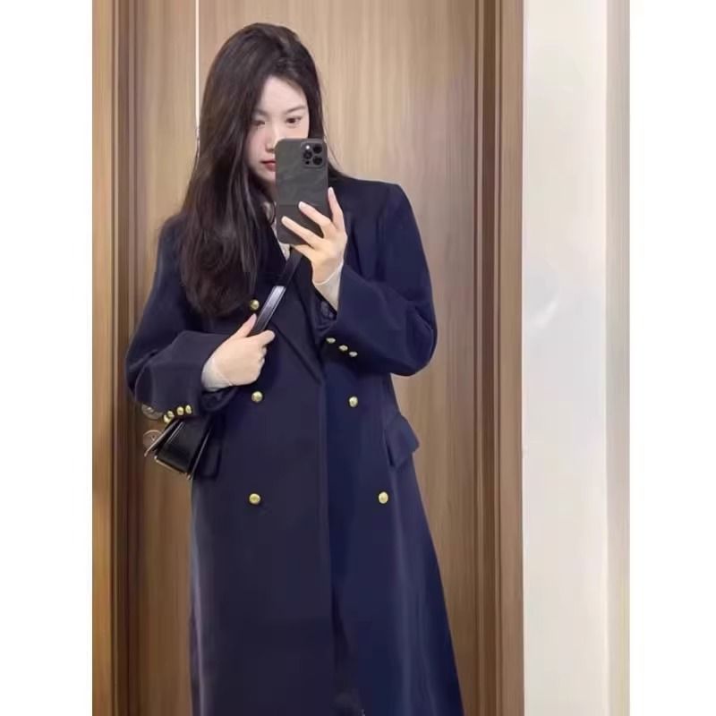 女性のためのハイエンドカジュアルブルーウールコート 2025 秋と冬の新しいヘップバーンスタイル韓国スタイルの厚いウールコートトレンディ
