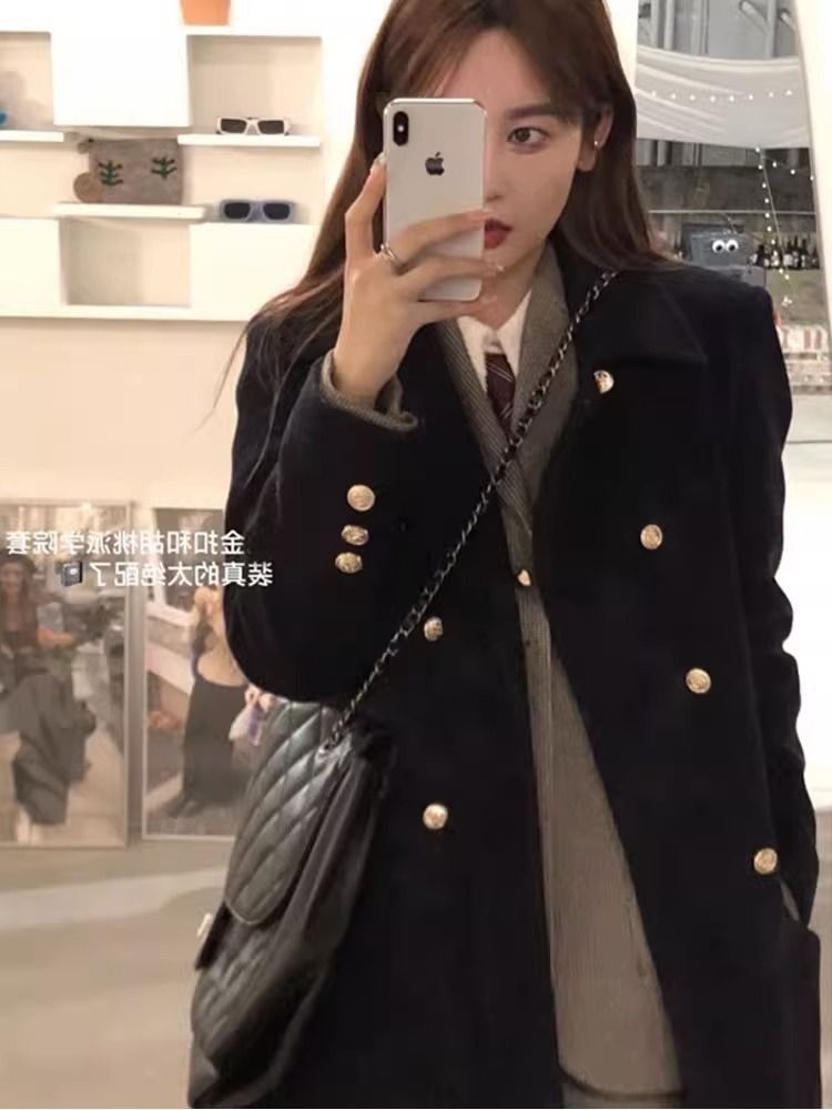 女性のためのシンプルな黒のウールコート 2025 秋と冬の新しいハイエンド韓国ヘボンスタイルウールコートトレンディ