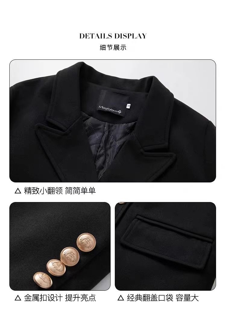 女性のための黒のウールコート 2025 秋と冬の新しい韓国スタイルの小さなヘップバーンスタイルの厚いウールコートトレンディ