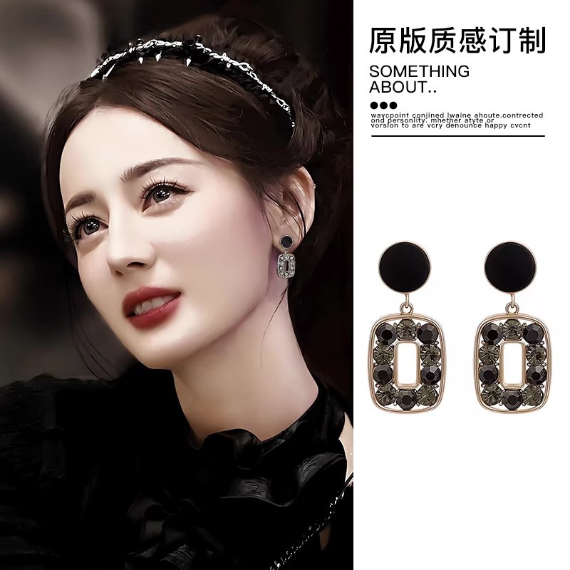 2025年新款爆款港风韩国东大门夸张复古灰色水钻耳环气质银针耳饰