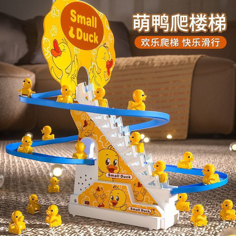 インターネット有名人の小さなアヒルが階段を登って電車に乗る子供用小さなアヒルのトラックスライド赤ちゃん早期教育知育玩具