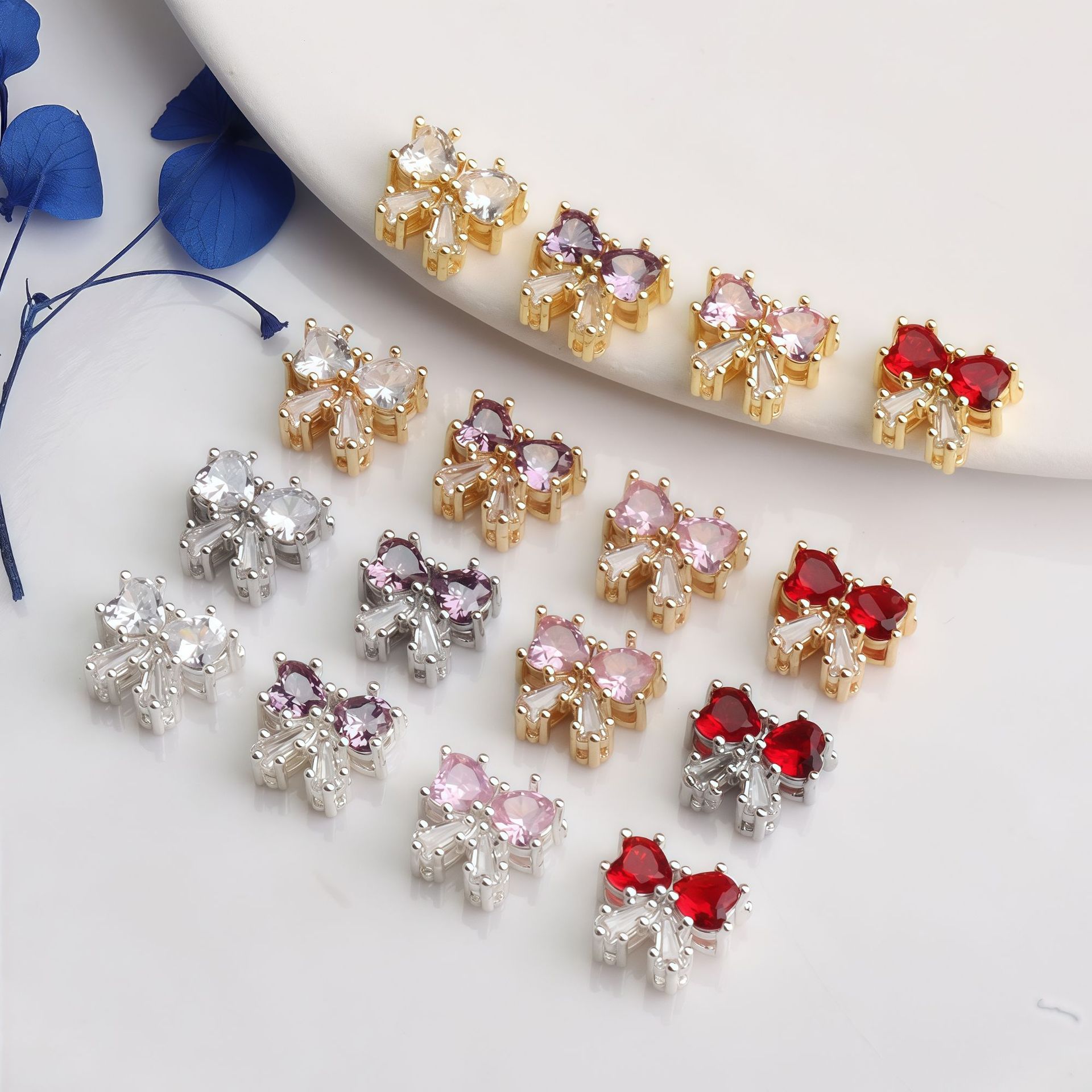 14K包金保色镶嵌锆石爱心蝴蝶结水滴吊坠隔珠diy水晶手链串珠饰品
