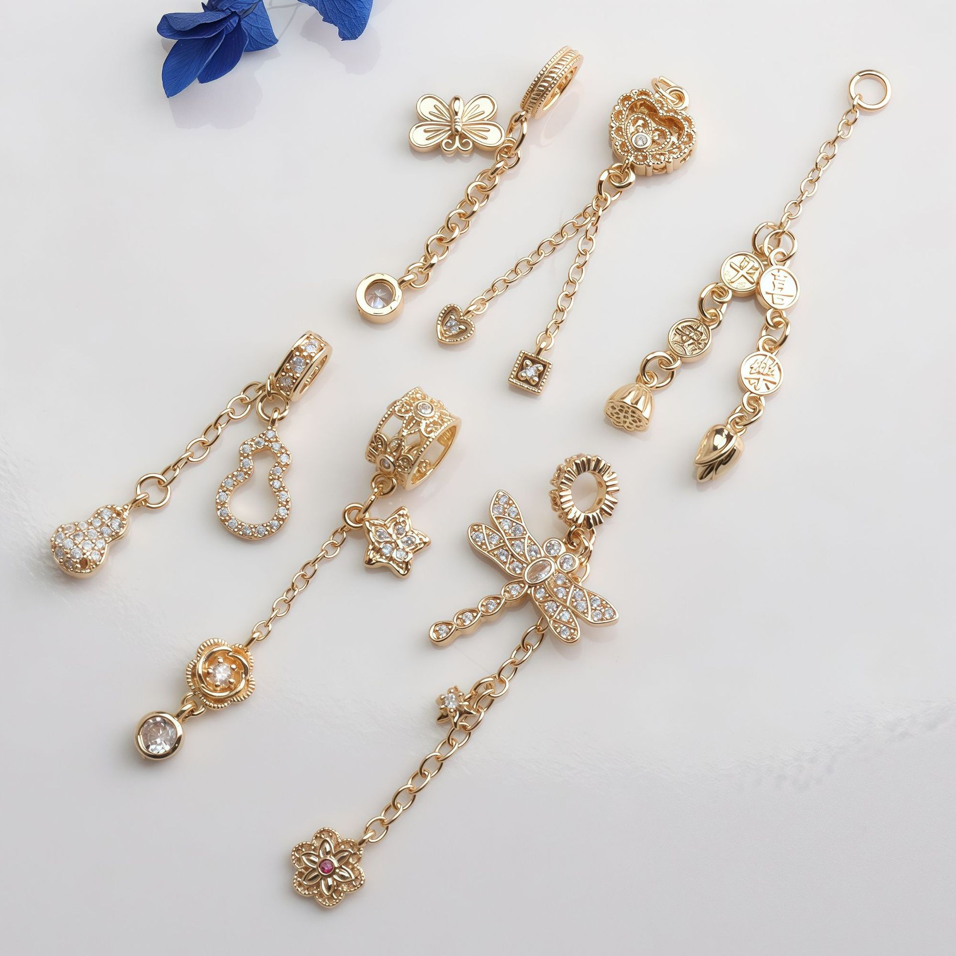 14K包金保色镶锆石爱心蜻蜓蝴蝶结流苏隔珠diy手链项链小滴溜挂件