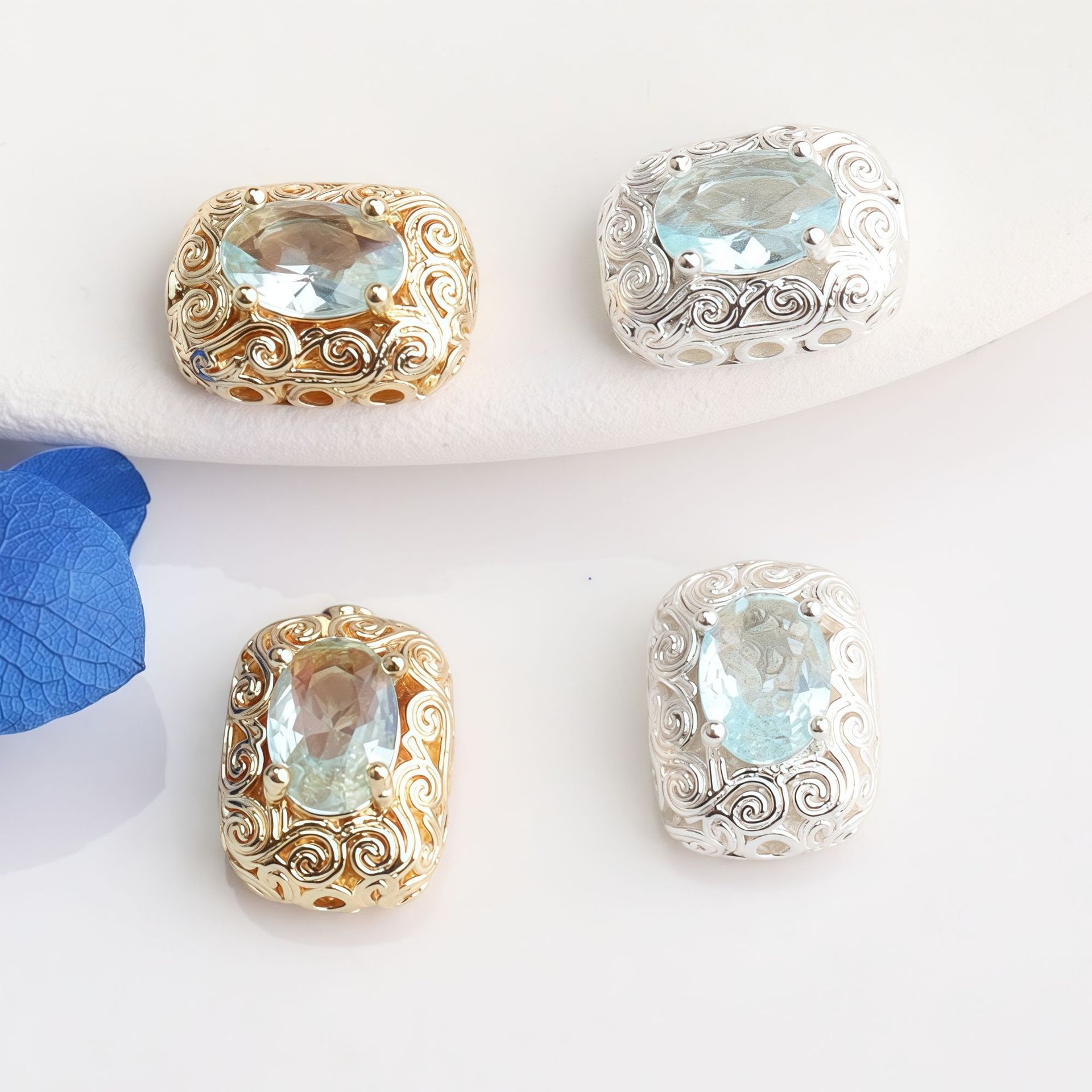 14K包金保色 镂空镶锆石长方形隔珠 手工diy水晶手链串珠饰品散珠