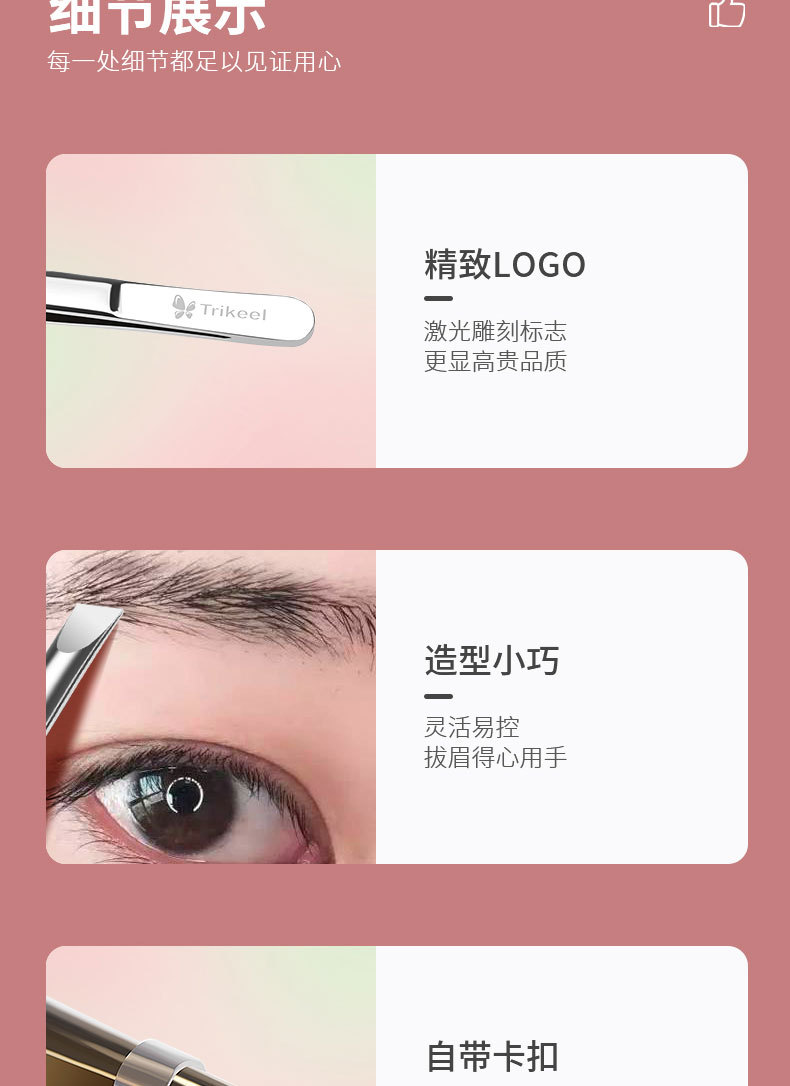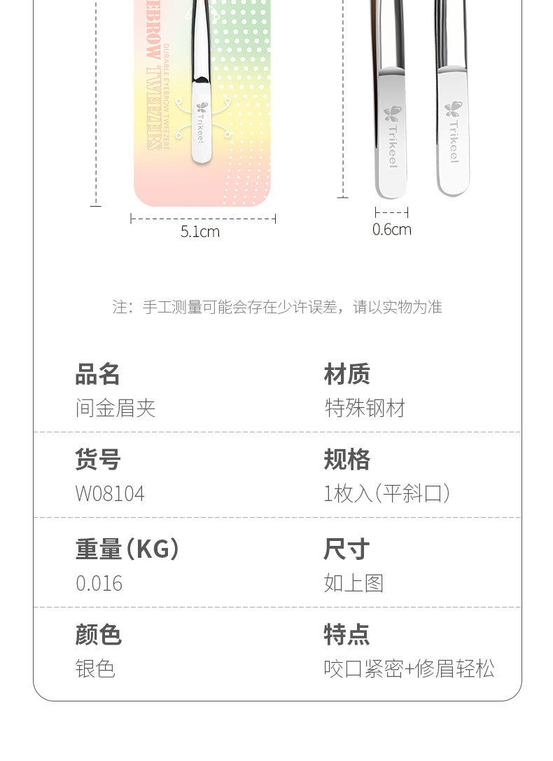 川琦儿眉夹拔毛夹子胡子高精密小修眉钳不锈钢眉毛夹镊子拔胡子