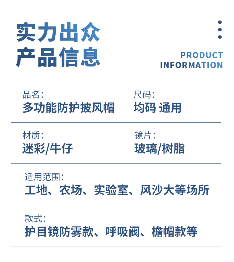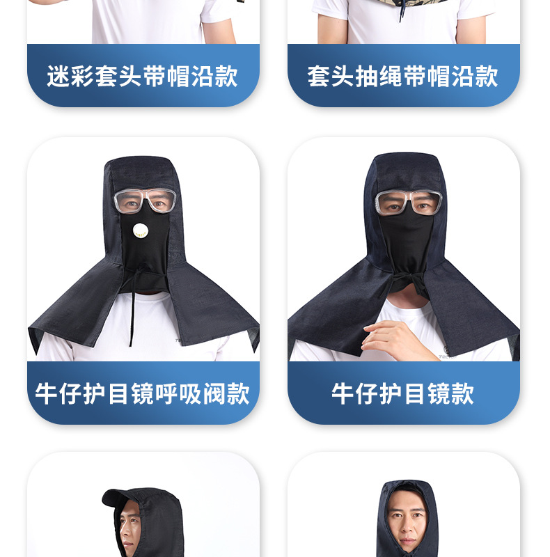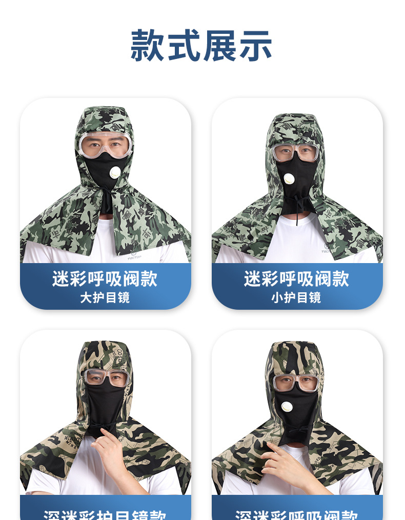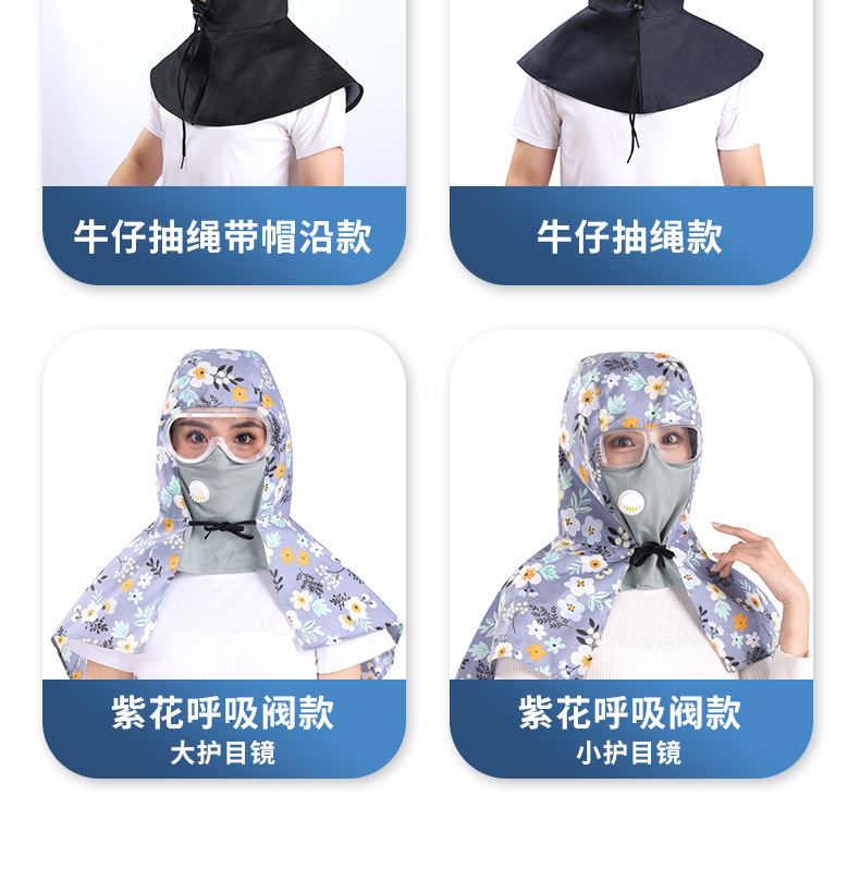 型号 01五星呼吸阀大护目镜款,02五星呼吸阀小护目镜款,03五星护目镜款,04紫花呼吸阀大护目镜,05紫花呼吸阀小护目镜,06剪刀大眼镜呼吸阀款,07剪刀呼吸阀款,08剪刀护目镜款,09牛仔眼镜呼吸阀款,10牛仔护目镜款,11迷彩抽绳锁扣带帽檐款,12迷彩抽绳锁扣款,13迷彩开襟系带单层,14迷彩双层带里披肩帽,15迷彩套头款,16牛仔抽绳锁扣带帽檐款,17牛仔抽绳锁扣款,18牛仔套头帽,19牛仔单层防尘帽,20牛仔双层带里防尘帽