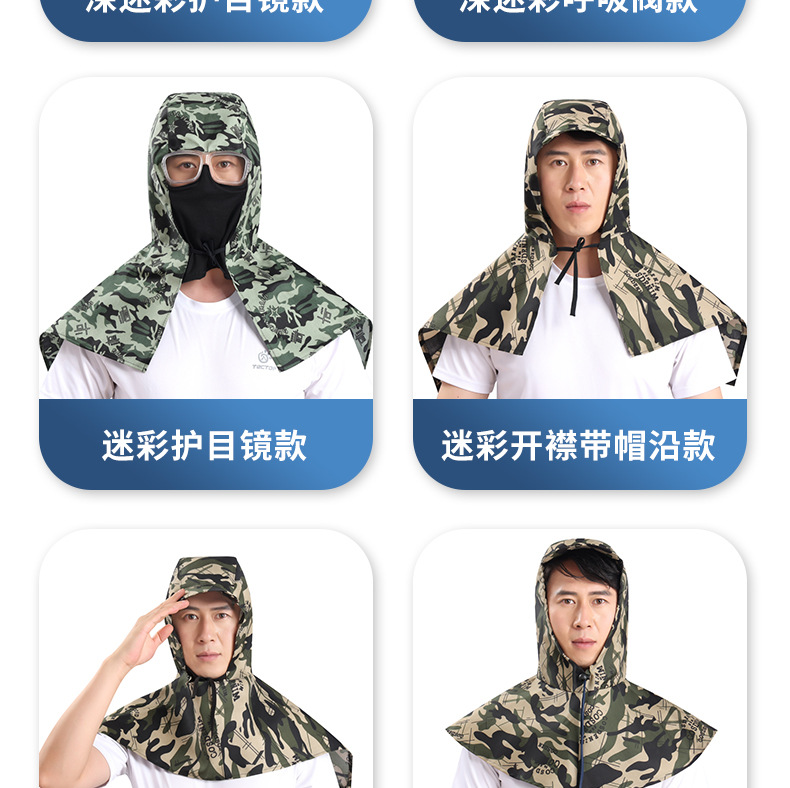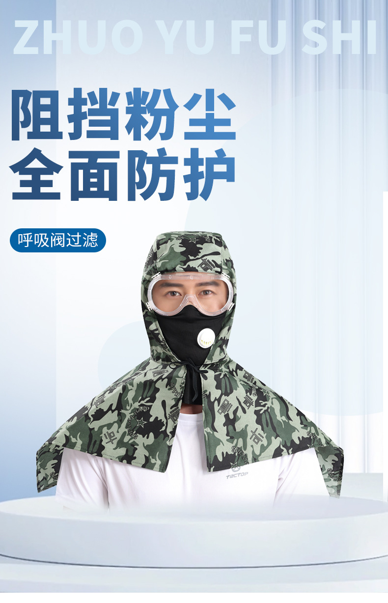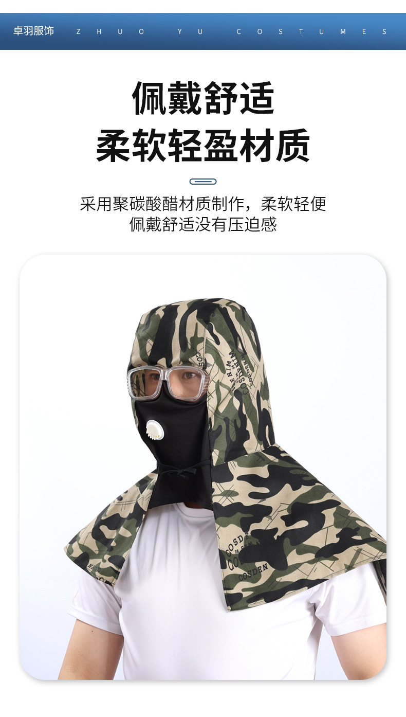 迷彩マント帽子防塵労働保護カウボーイマント帽子灰防止工業粉塵研磨マスク通気耐摩耗性