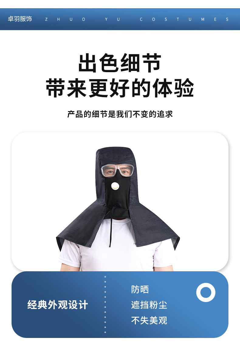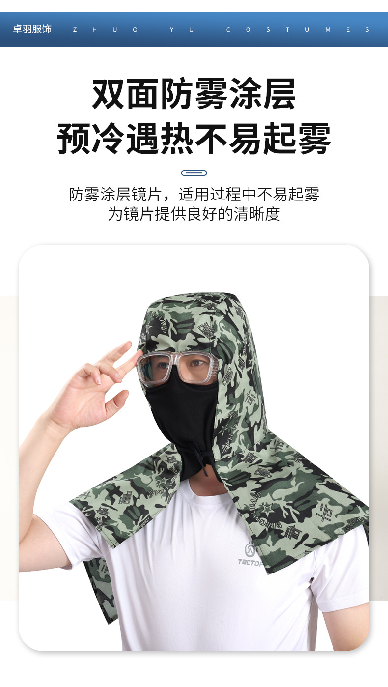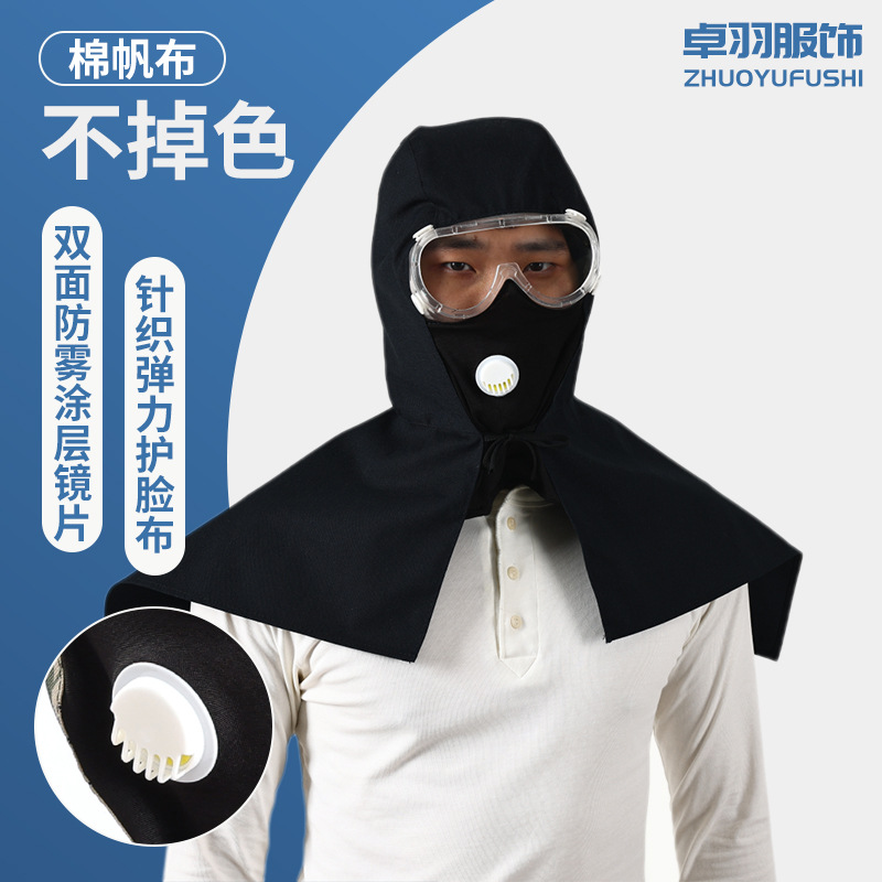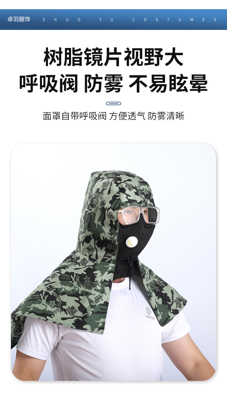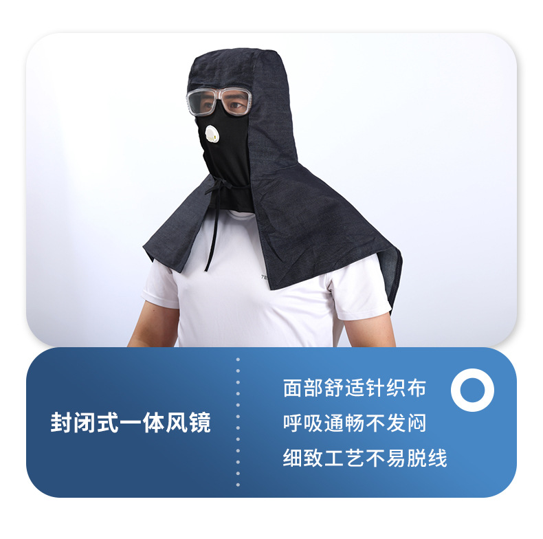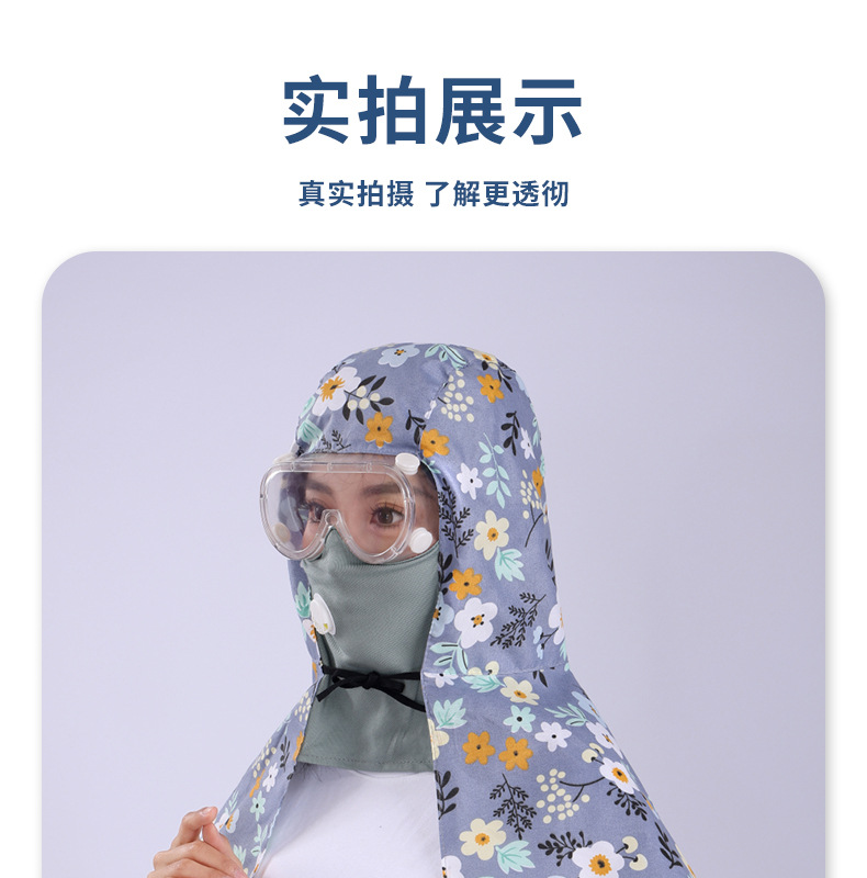 防尘帽头部防护披肩帽大护目镜带呼吸阀男女同款劳保防晒头套风帽