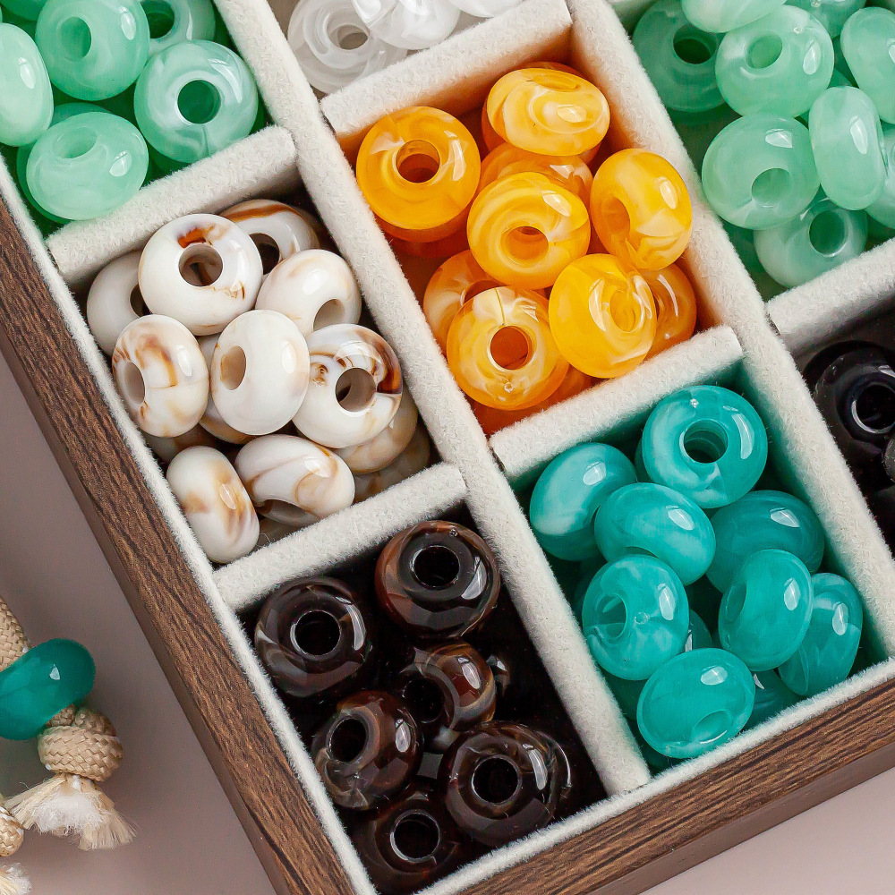 13*17mm彩色树脂大孔桶珠DIY装饰纽扣时尚简约帽衫外套吊坠绳散珠