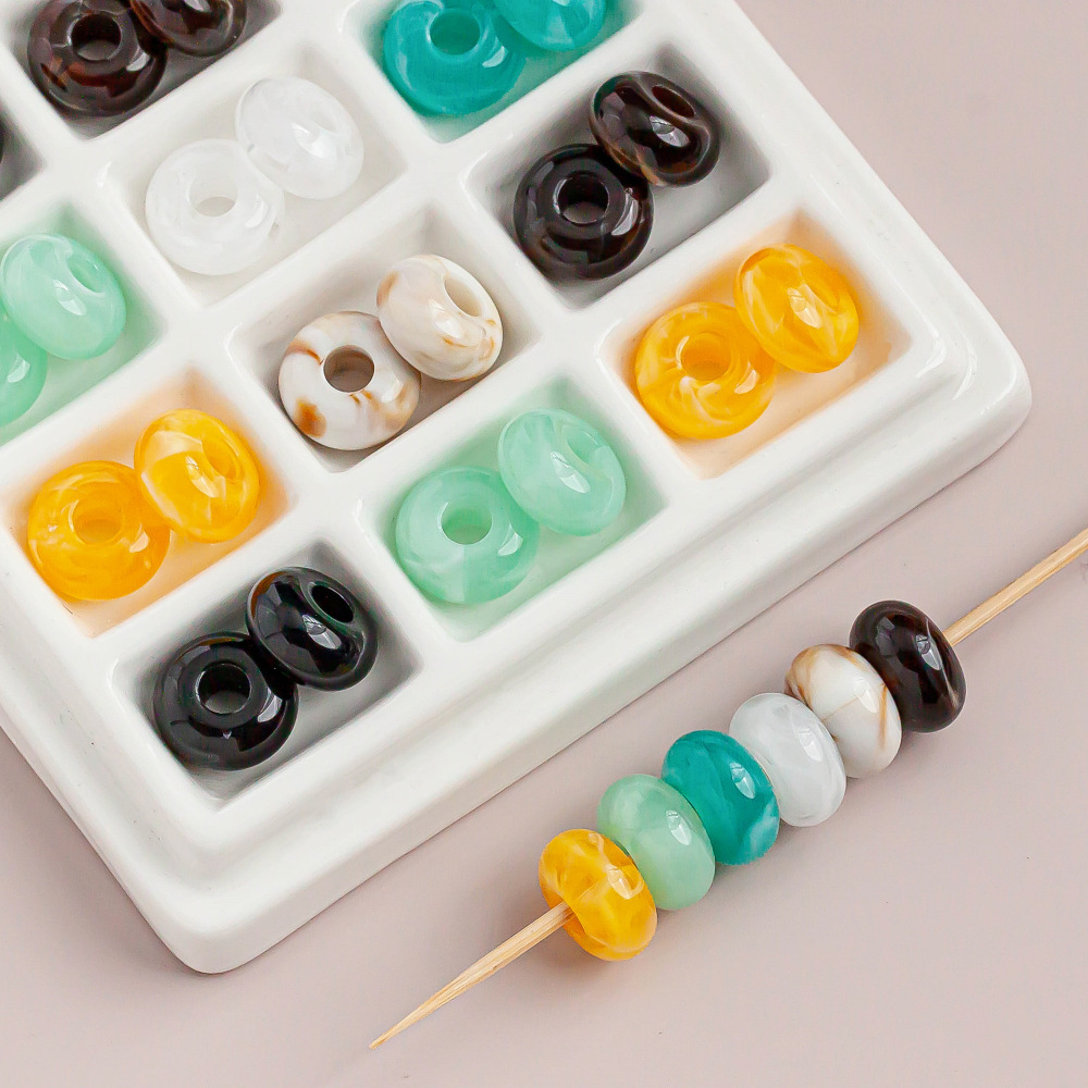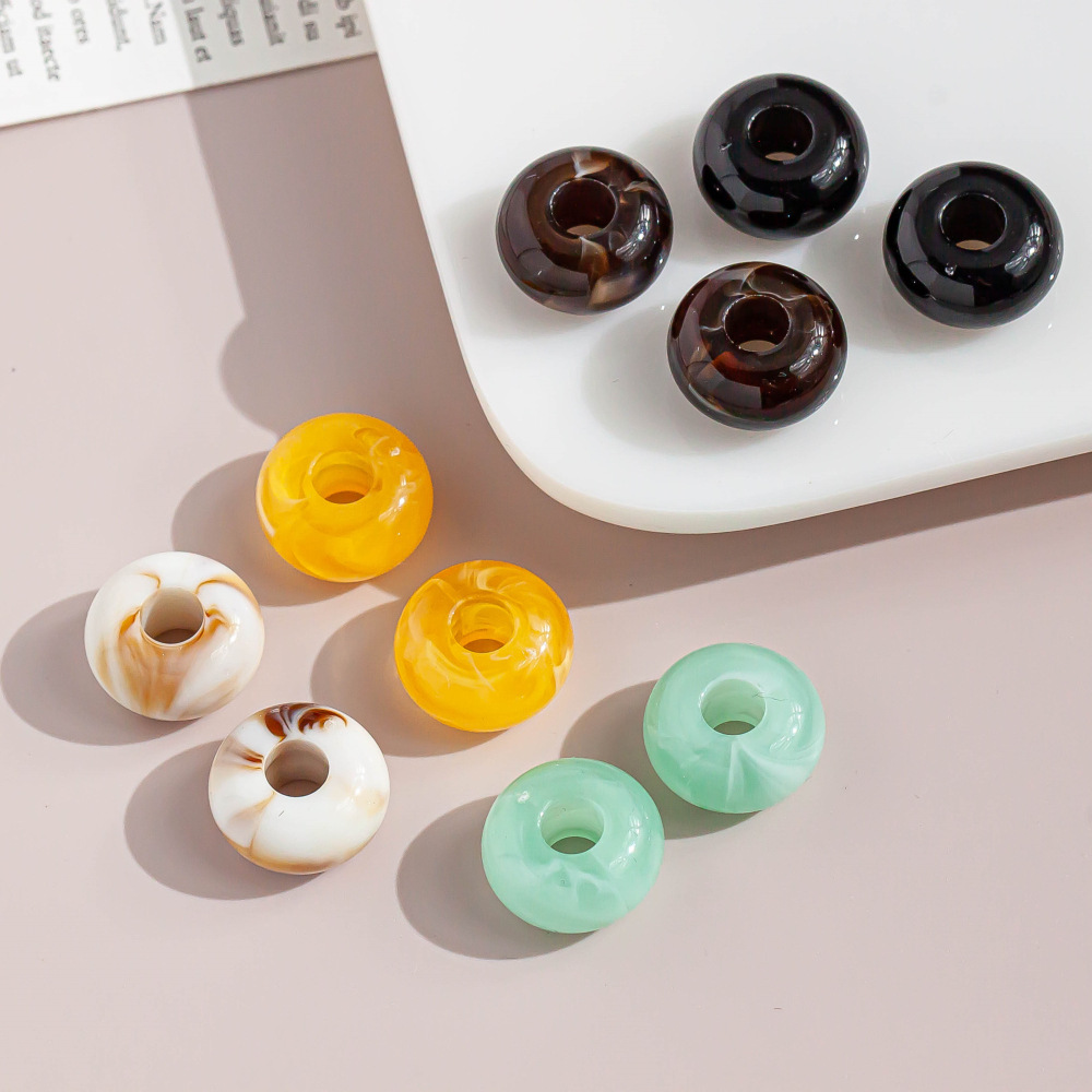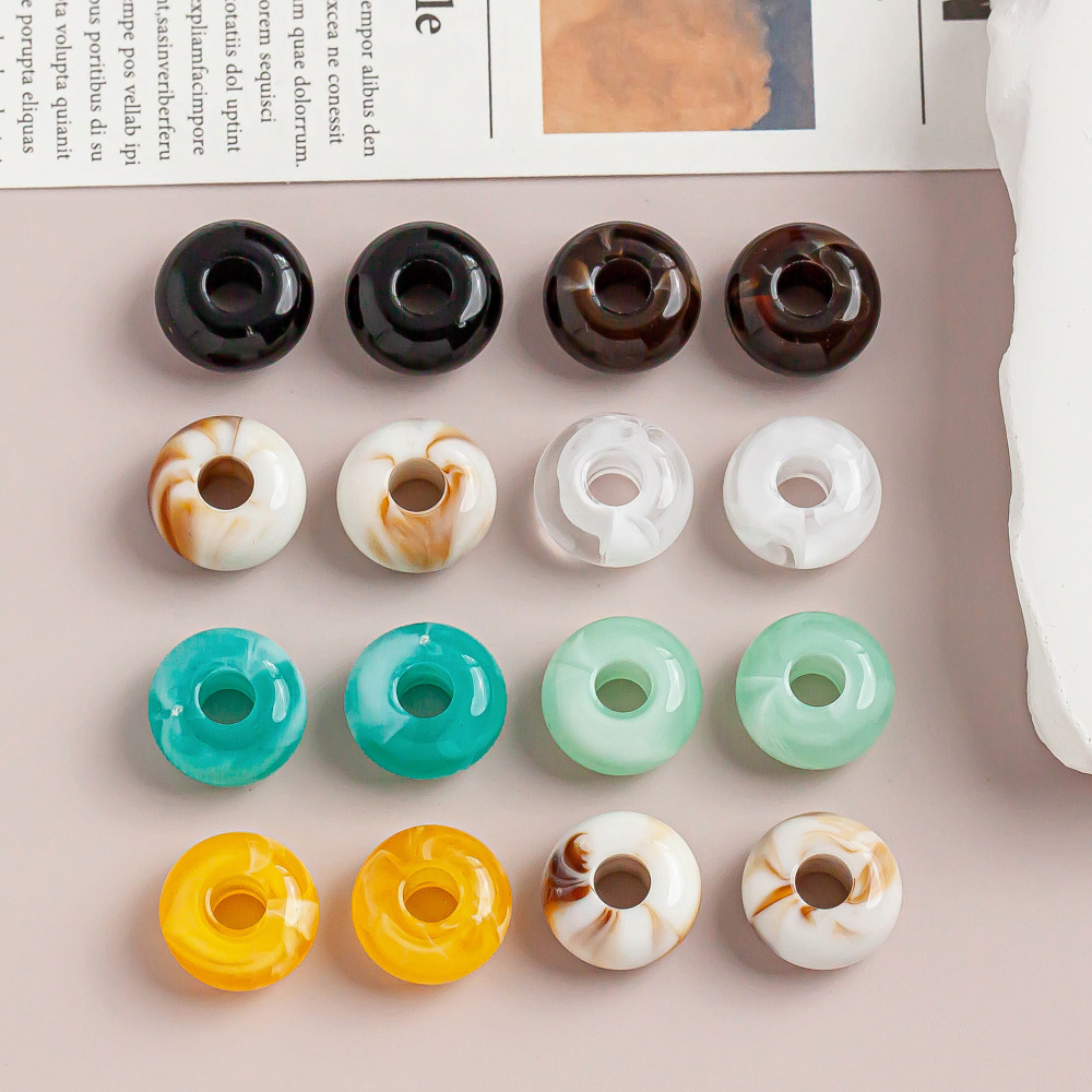 树脂大孔珠扁圆晕染亚克力直孔珠服装泳装配饰散珠DIY饰品配件