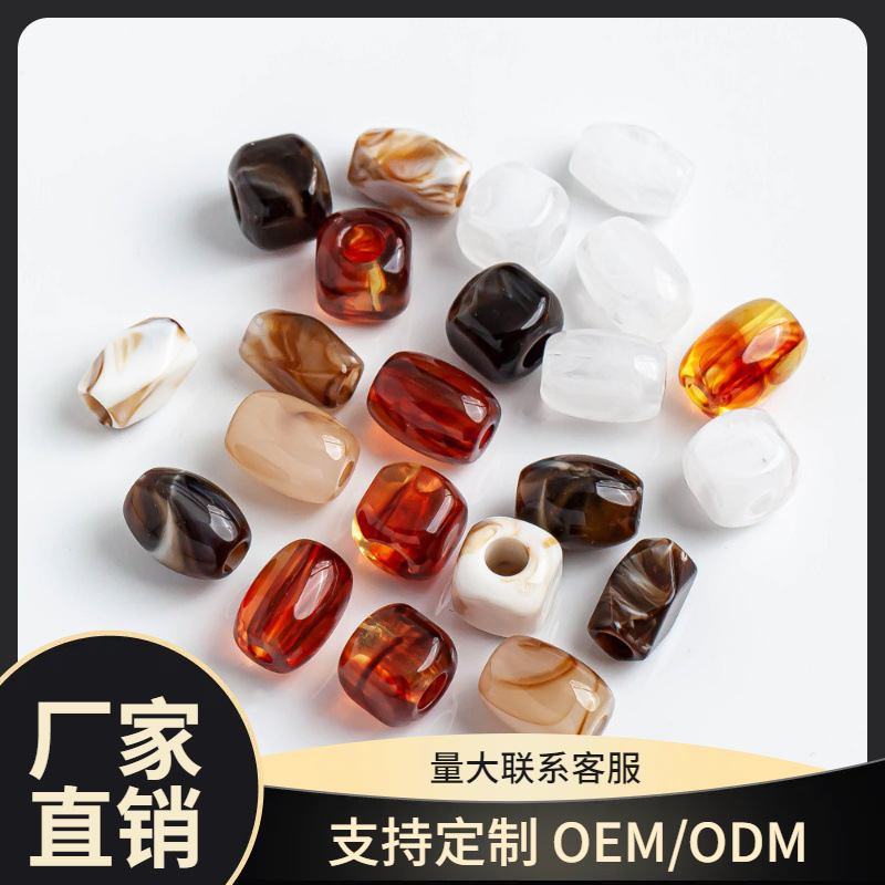 树脂不规则大孔晕染桶珠直孔珠服装泳装配饰吊坠散珠DIY饰品配件