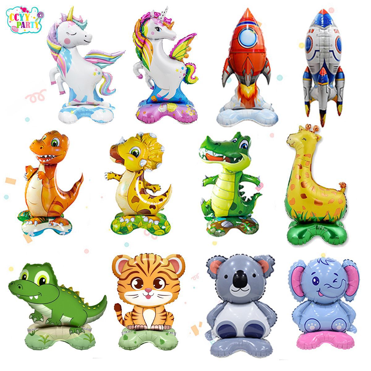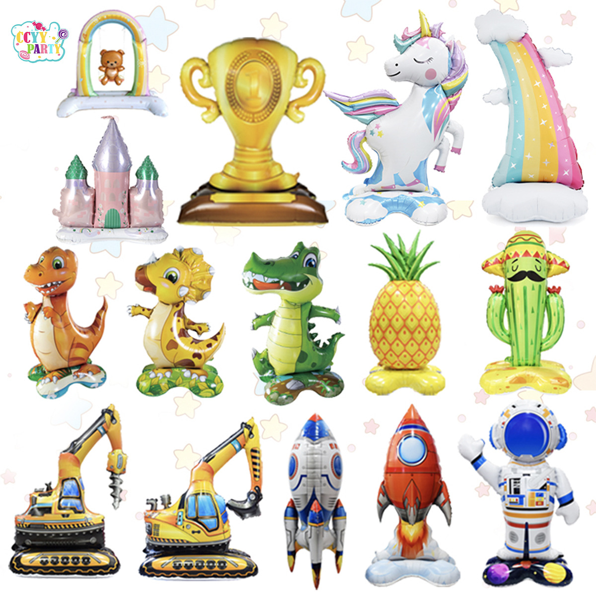 国境を越えた子供の日のテーマアルミ膜風船トロフィー恐竜ロケット立体ベース誕生日風船パーティー装飾