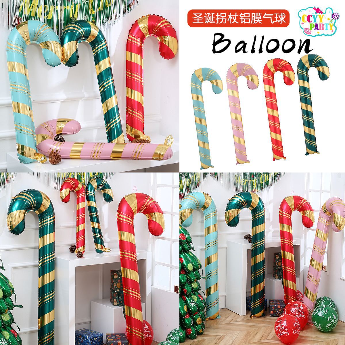 国境を越えて立つサンタクロースキャンディー杖アルミ膜風船クリスマスパーティー装飾道具シーン配置