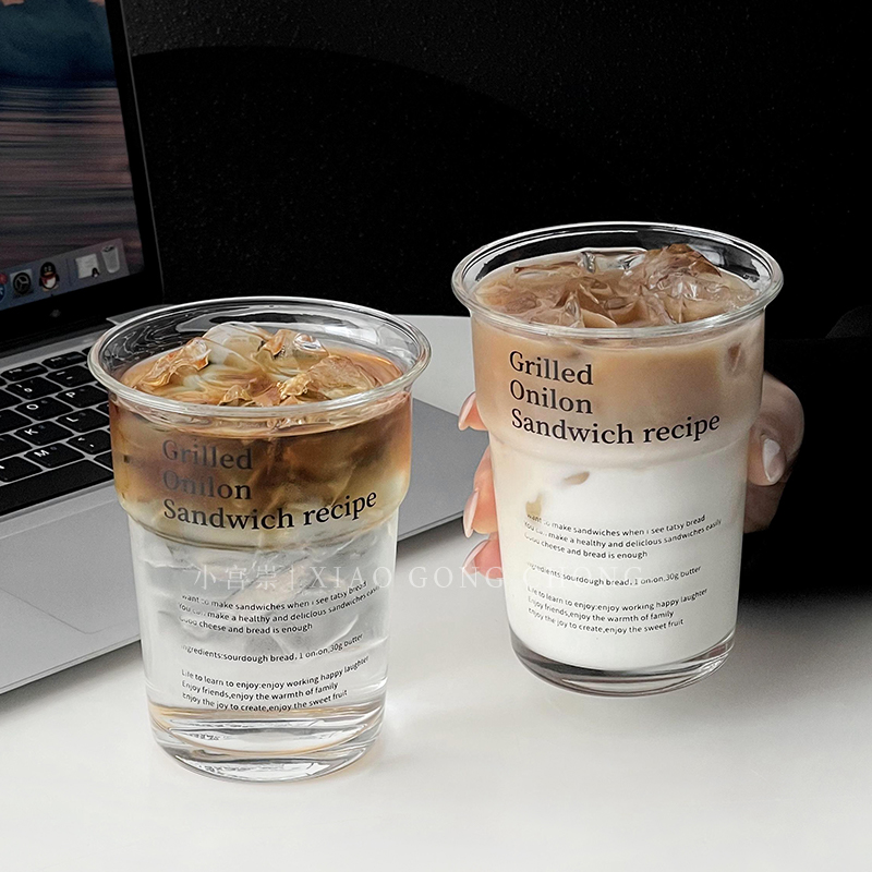 ins风反口透明玻璃杯高级感字母咖啡杯大容量冷饮杯果汁杯牛奶杯