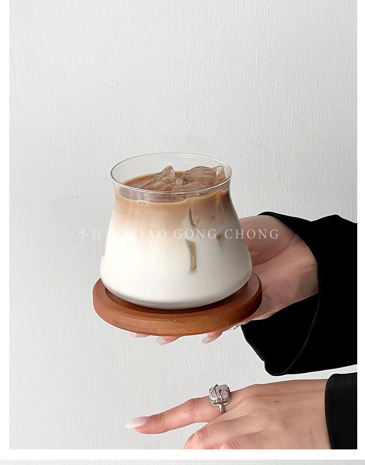 小众ins风胖嘟嘟冰美式咖啡杯牛奶拿铁玻璃杯设计感中古饮料杯子