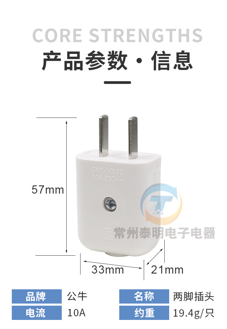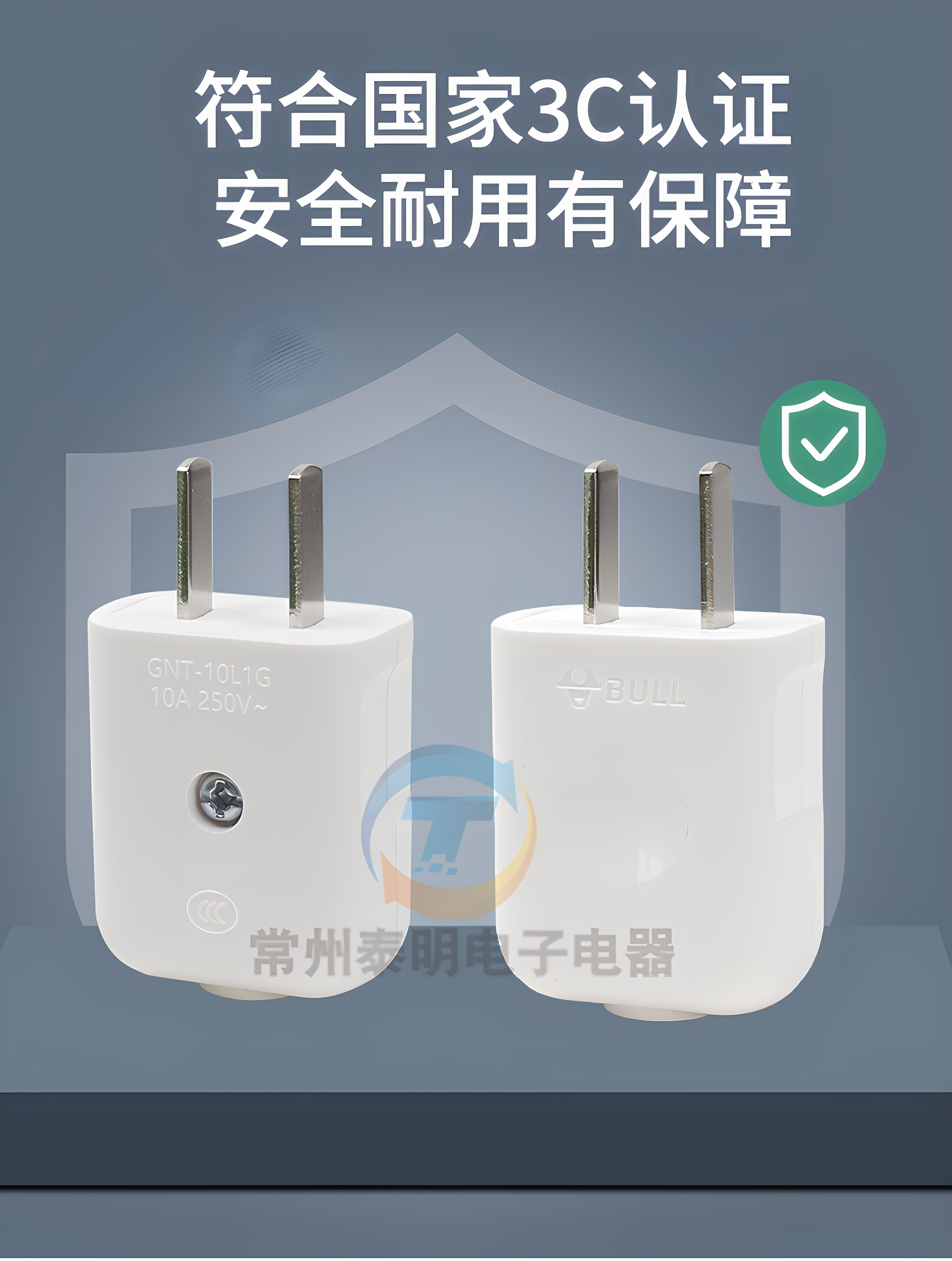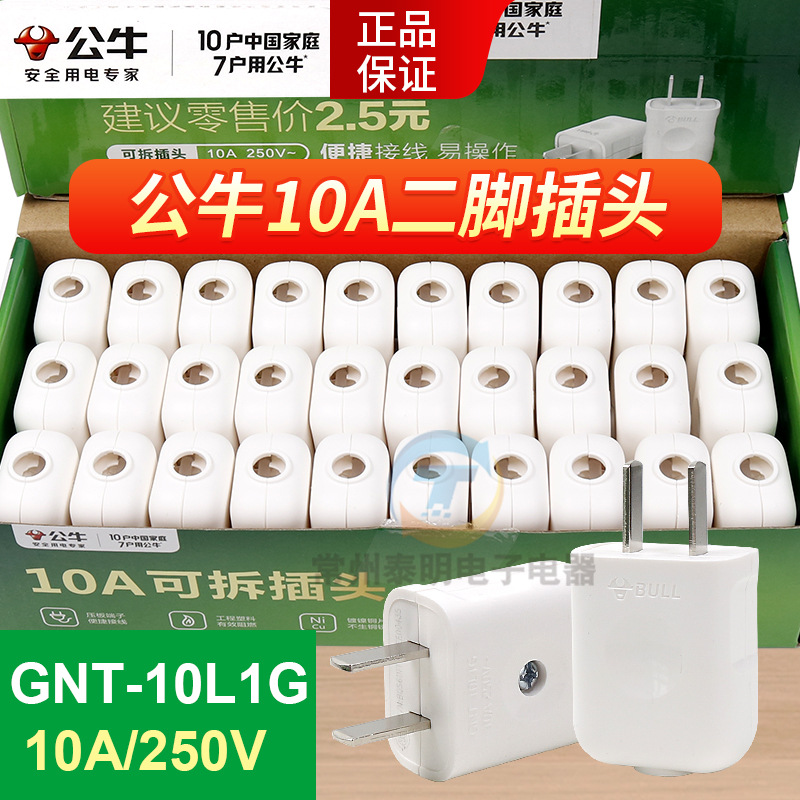 公牛10A两脚加厚插头摔不烂自接线插头防摔家用拆装耐摔GNT-10L4S