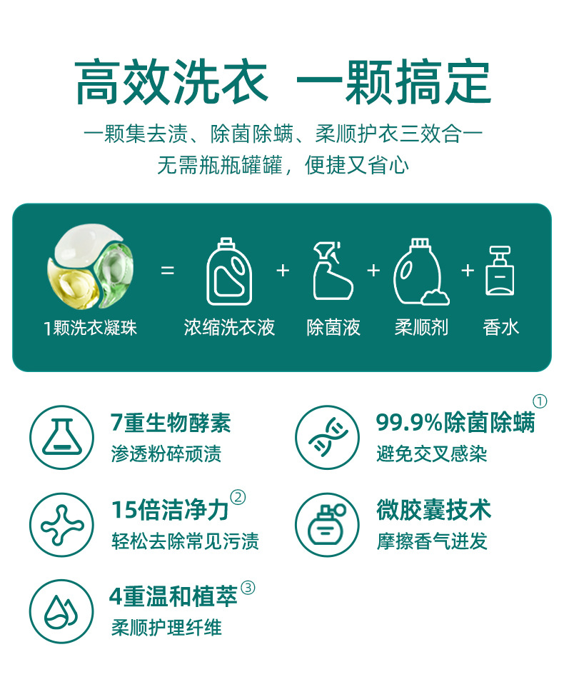 功效 深层清洁,除螨,持久留香,低泡易漂,低粘速溶