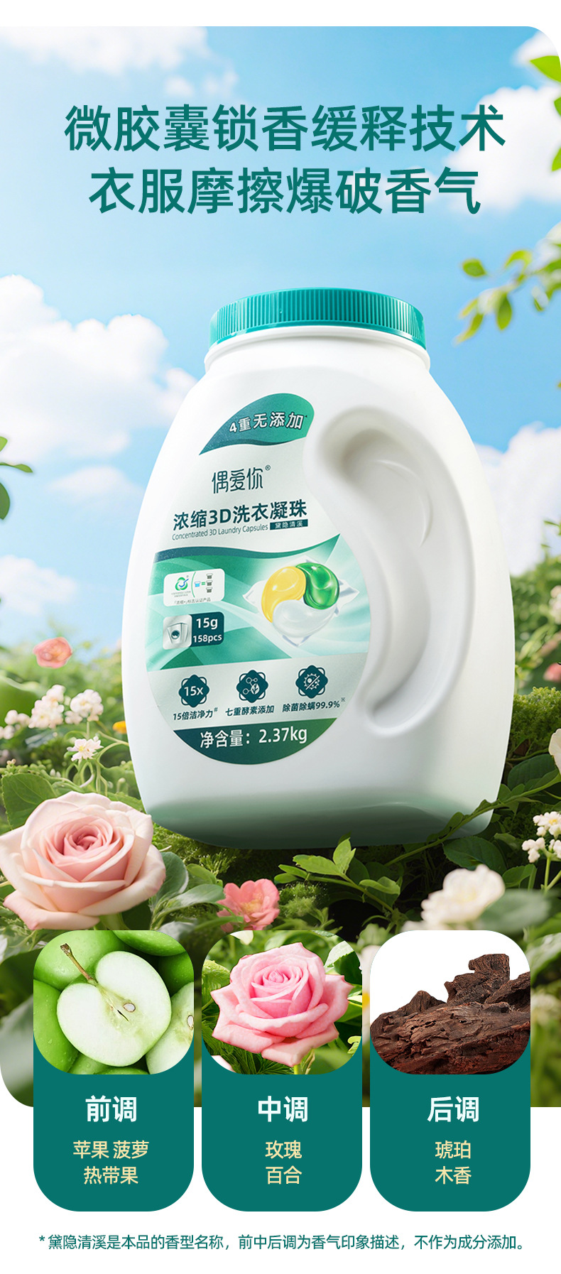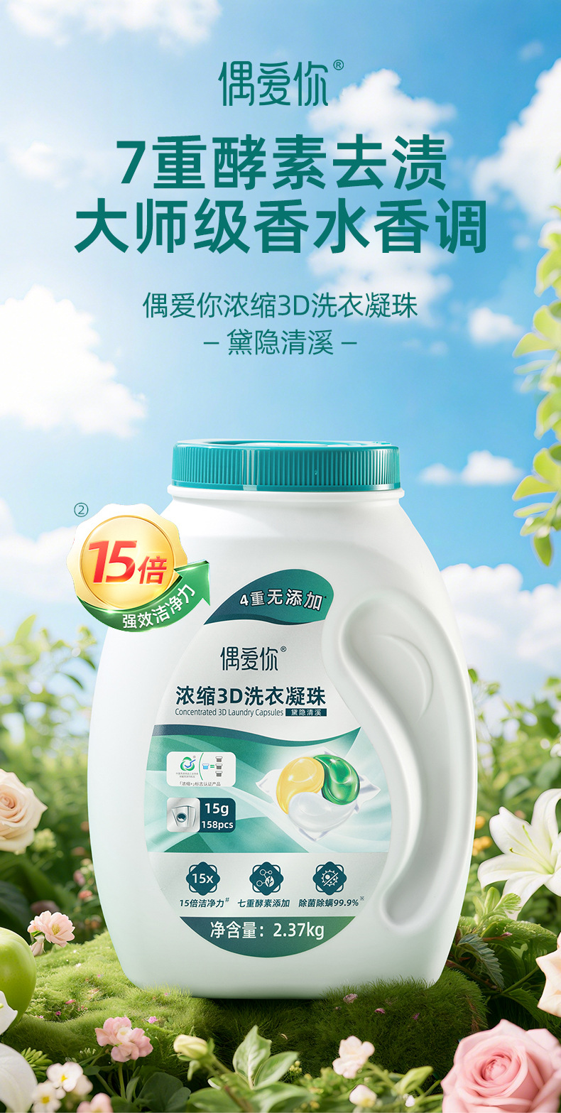 偶爱你清洁15克黛隐清香强效洁净杀菌除螨持久留香酵素去渍大容量