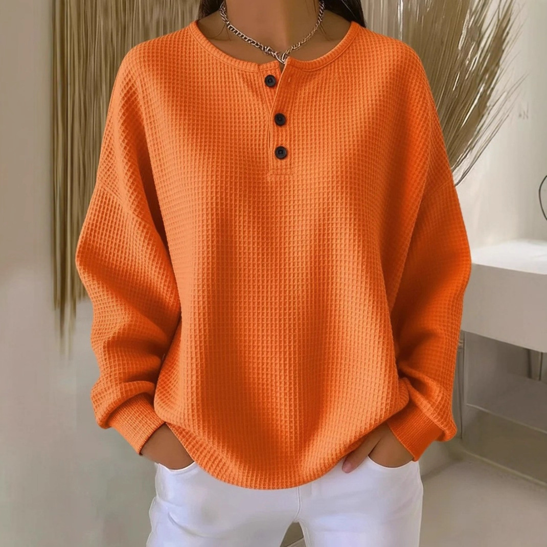 2025 跨境欧美亚马逊新款时尚V领纽扣华夫格纯色宽松套头长袖上衣