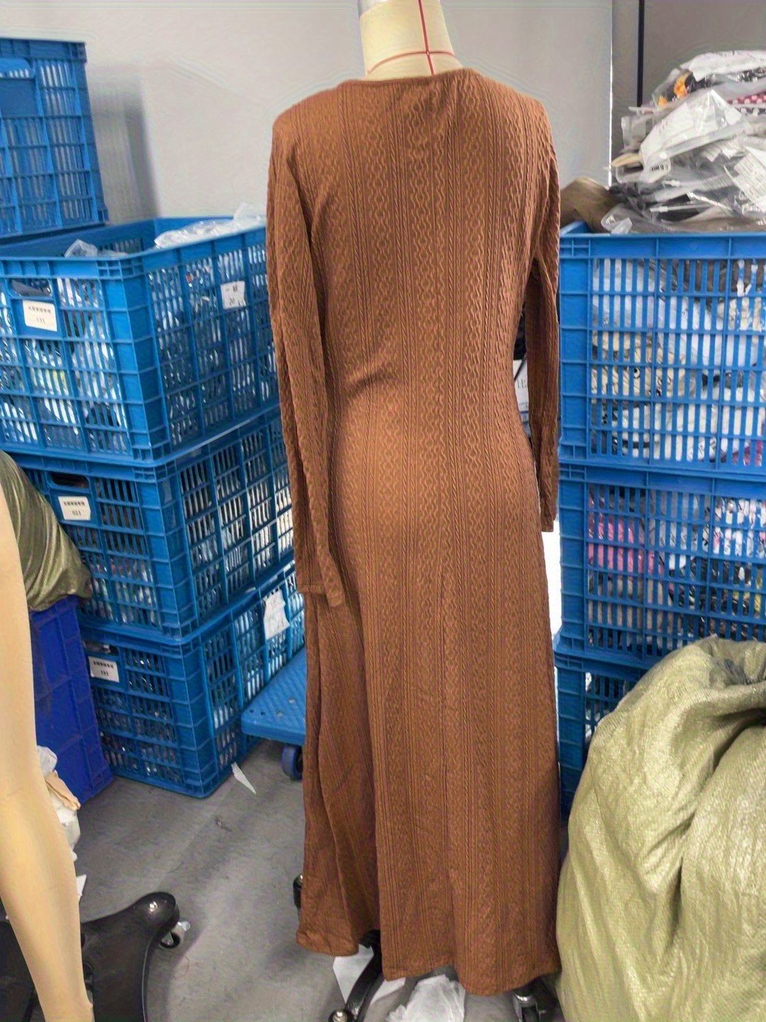 亚马逊欧美2025新款简约纯色坑条女士毛织连衣裙