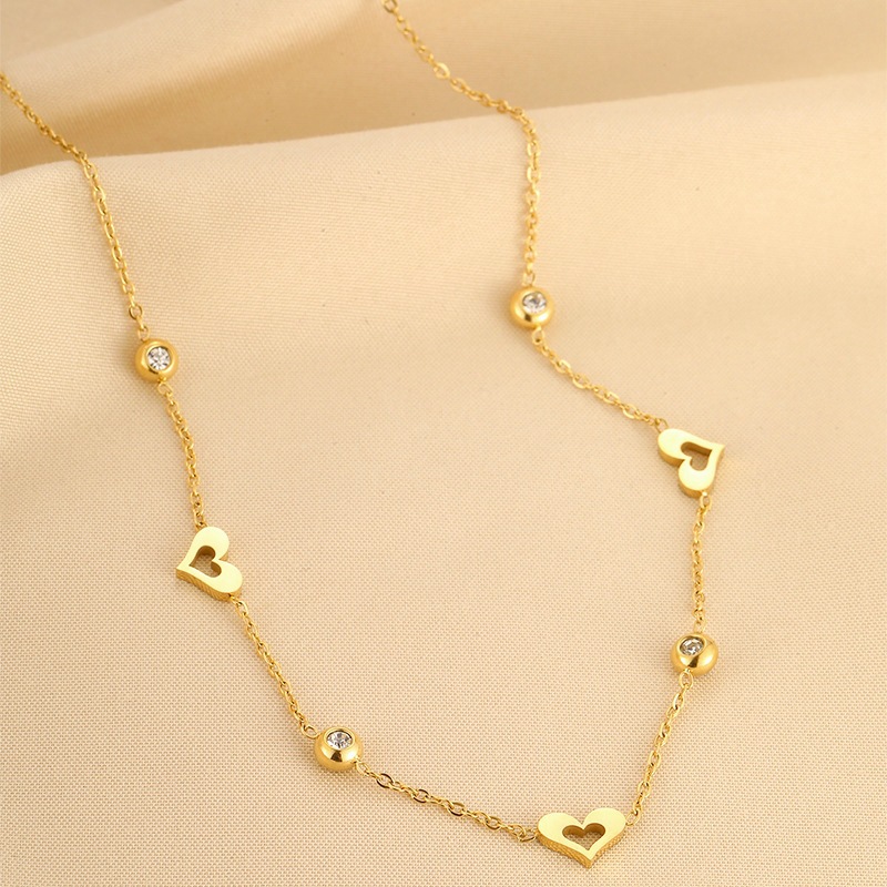 新款简约白钻爱心吊坠钛钢项链女时尚百搭四叶花高级感锁骨链批发
