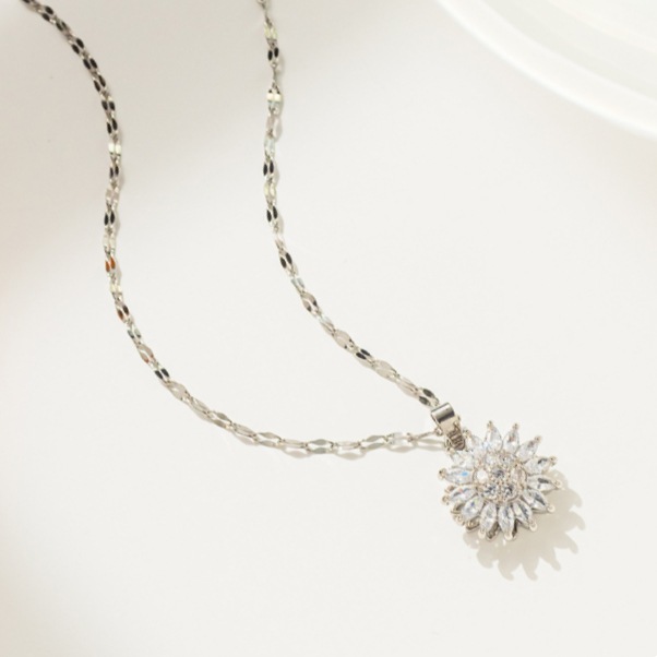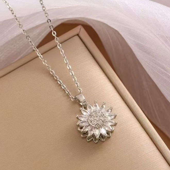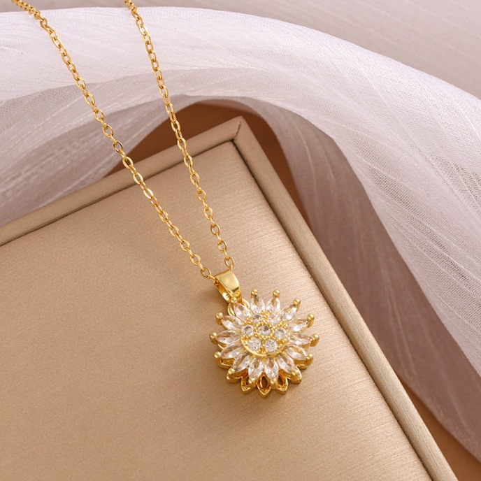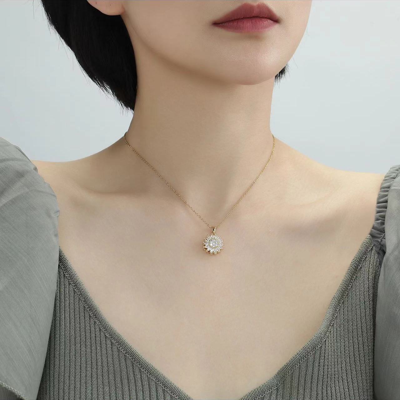 ハイエンドの回転フルダイヤモンドひまわりペンダントチタン鋼ネックレス女性のライト高級ニッチデザイン非退色鎖骨チェーン
