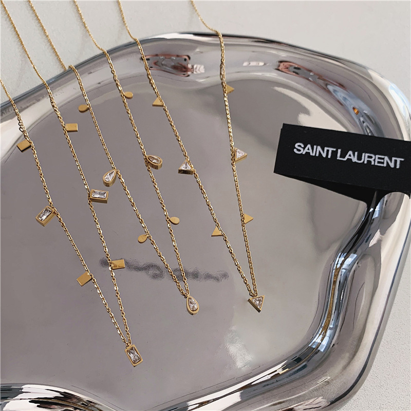 シンプルでおしゃれな水滴型スクエアダイヤモンドチタン鋼ネックレス、女性用、爽やかで輝く18金高級鎖骨チェーン、卸売